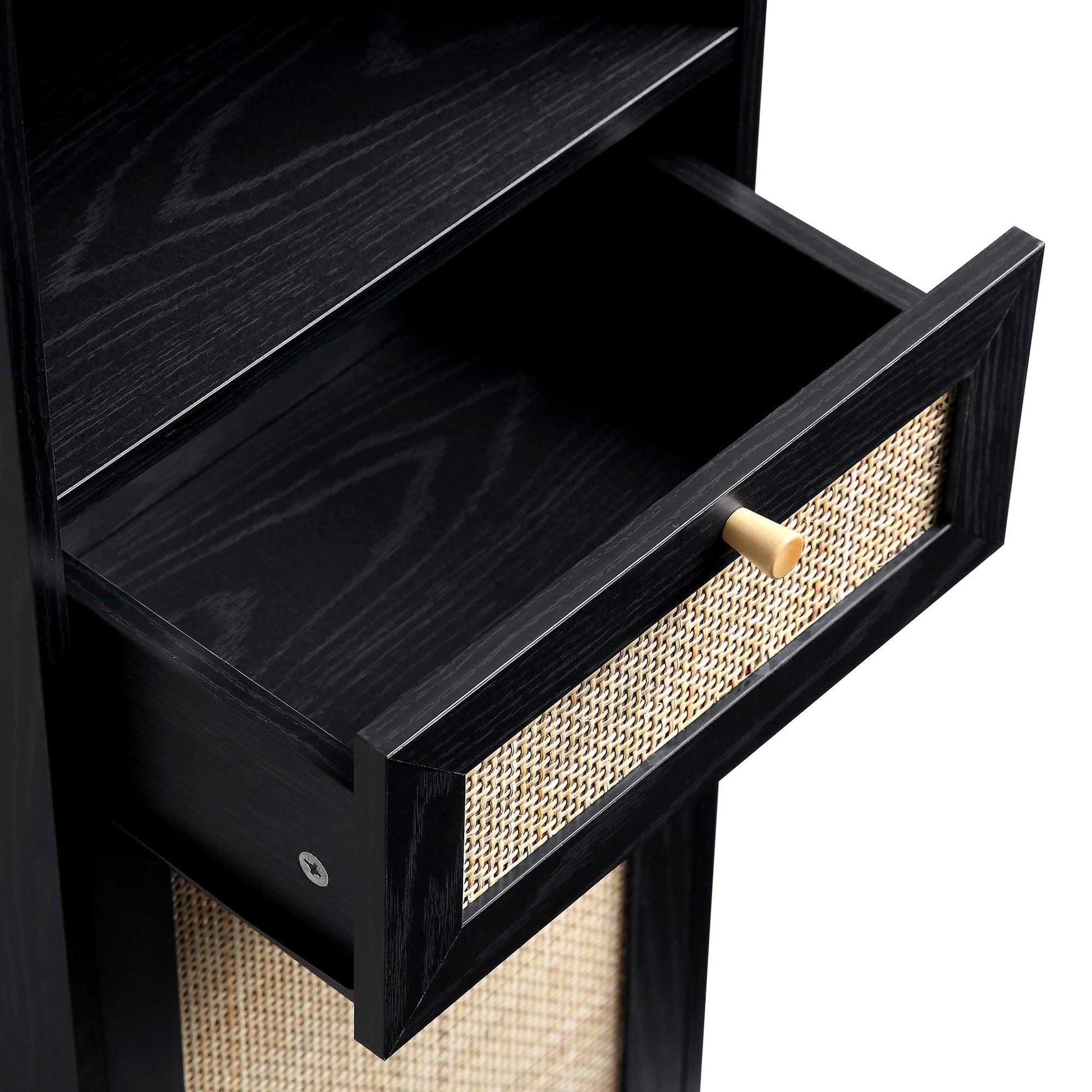 Meuble de salle de bain haut en rotin tressé Frances, noir