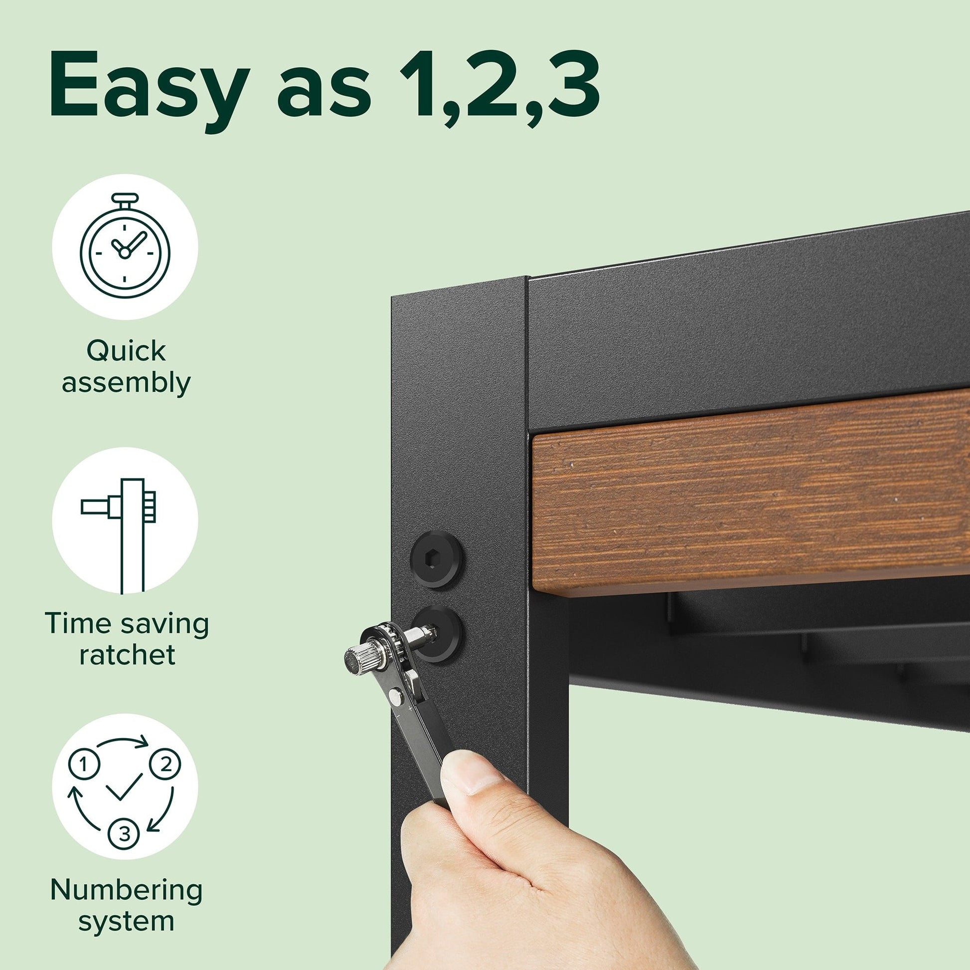 Le cadre de lit plateforme Kai en bambou et métal est magnifiquement conçu pour s'intégrer à une décoration industrielle ou moderne. Sa tête de lit à lattes et son pied de lit bas sont tous deux fabriqués en bambou durable aux finitions soignées, tandis que le reste du cadre est construit en acier robuste. Avec sa silhouette épurée, ce lit moderne apporte style et fonctionnalité à votre suite parentale, la chambre de vos enfants ou une chambre d'amis. Conçu pour être utilisé sans sommier, il vous permet de poser votre matelas directement sur les lattes métalliques pour un soutien durable. Toutes les pièces, les outils et les instructions sont soigneusement emballés dans un seul carton livré directement chez vous pour un montage rapide et facile. Une garantie de 5 ans est également incluse. Avec le lit plateforme Kai, allier votre style à un meuble fiable et abordable est plus facile que vous ne le pensez.