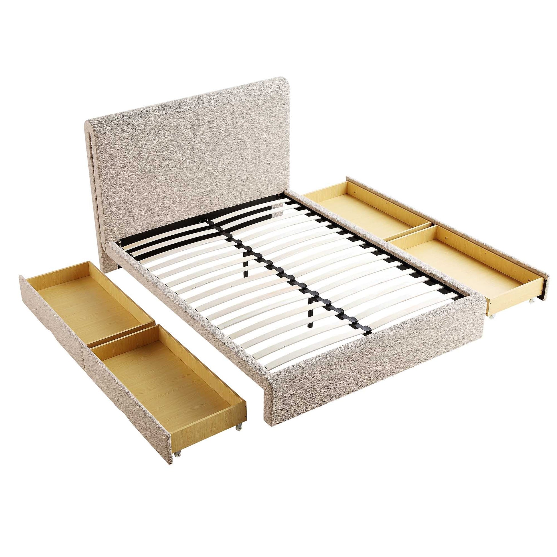 La conception élégante de la tête de lit curviligne se coordonne avec le pied de lit subtilement incurvé.