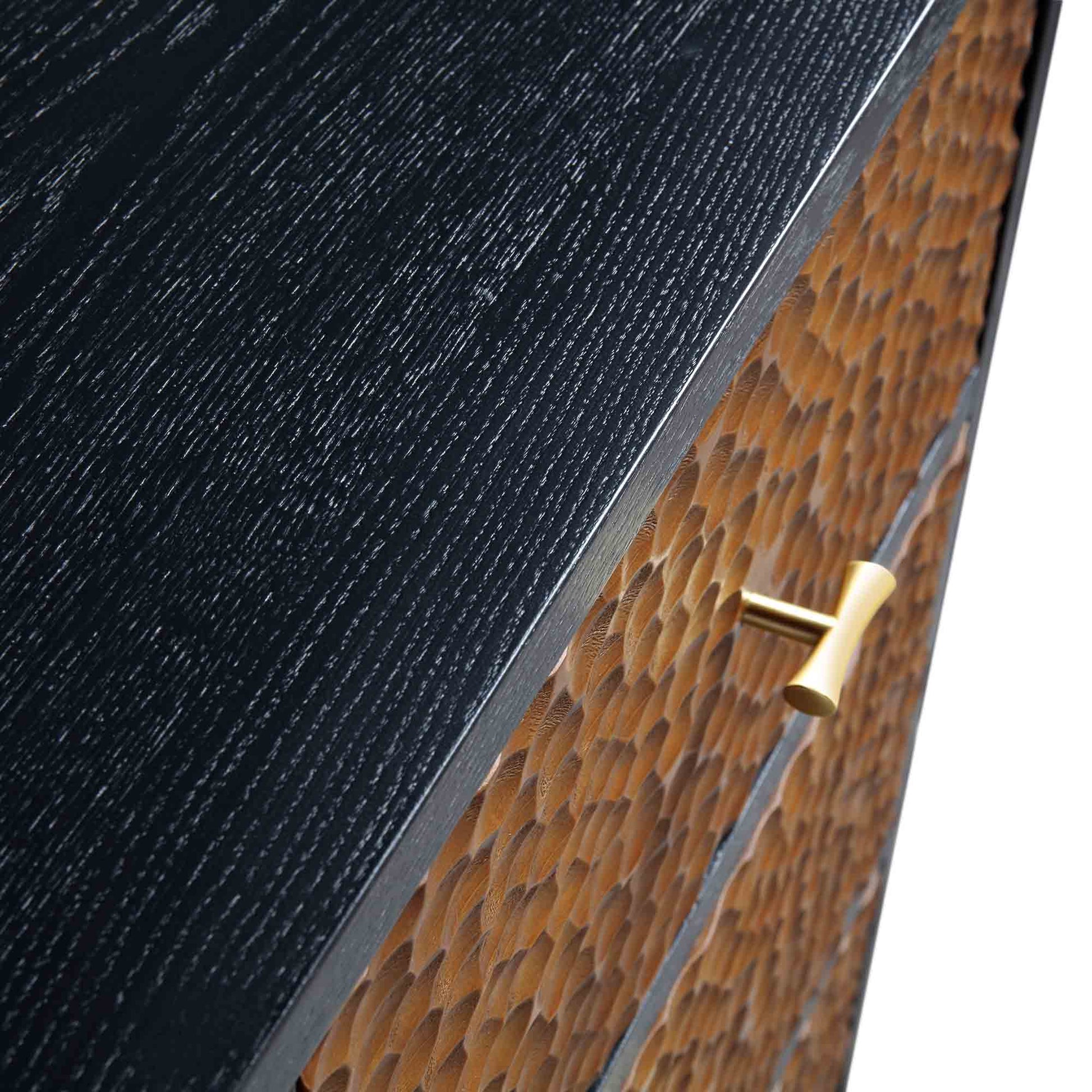 Buffet sculpté Bianca Chip à 2 portes et 3 tiroirs, bronze antique et noir