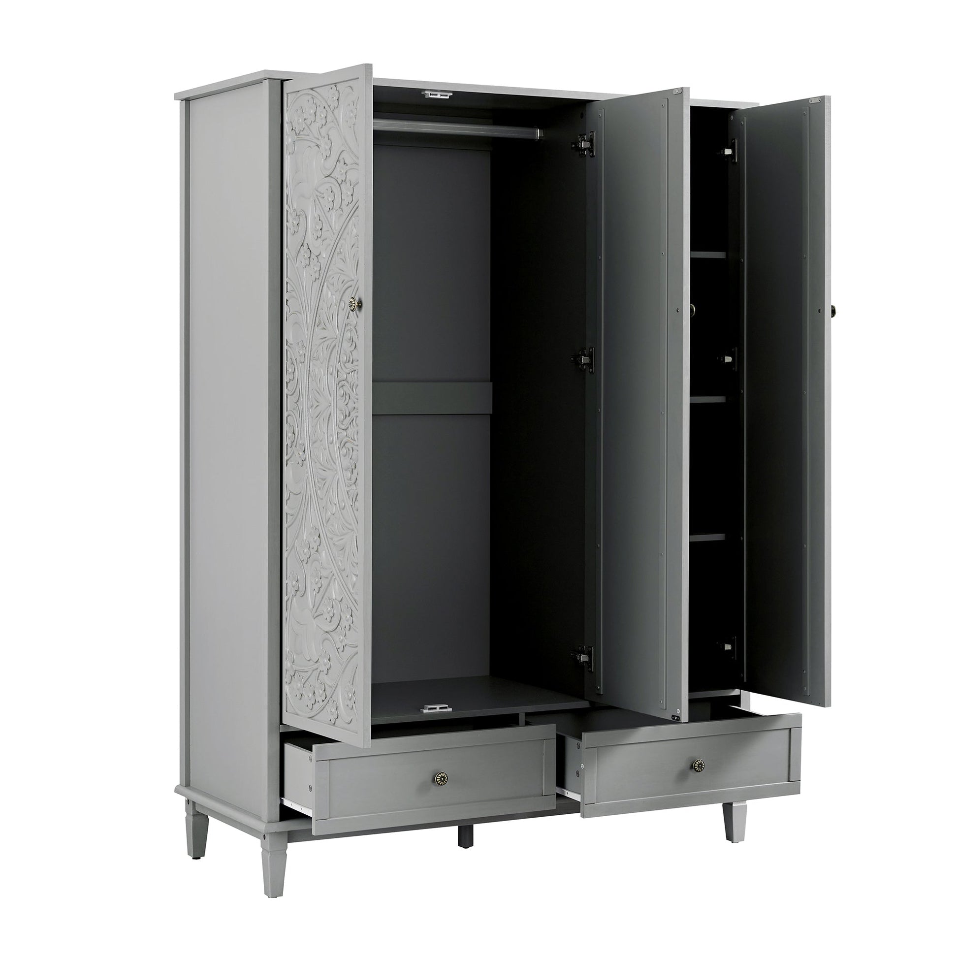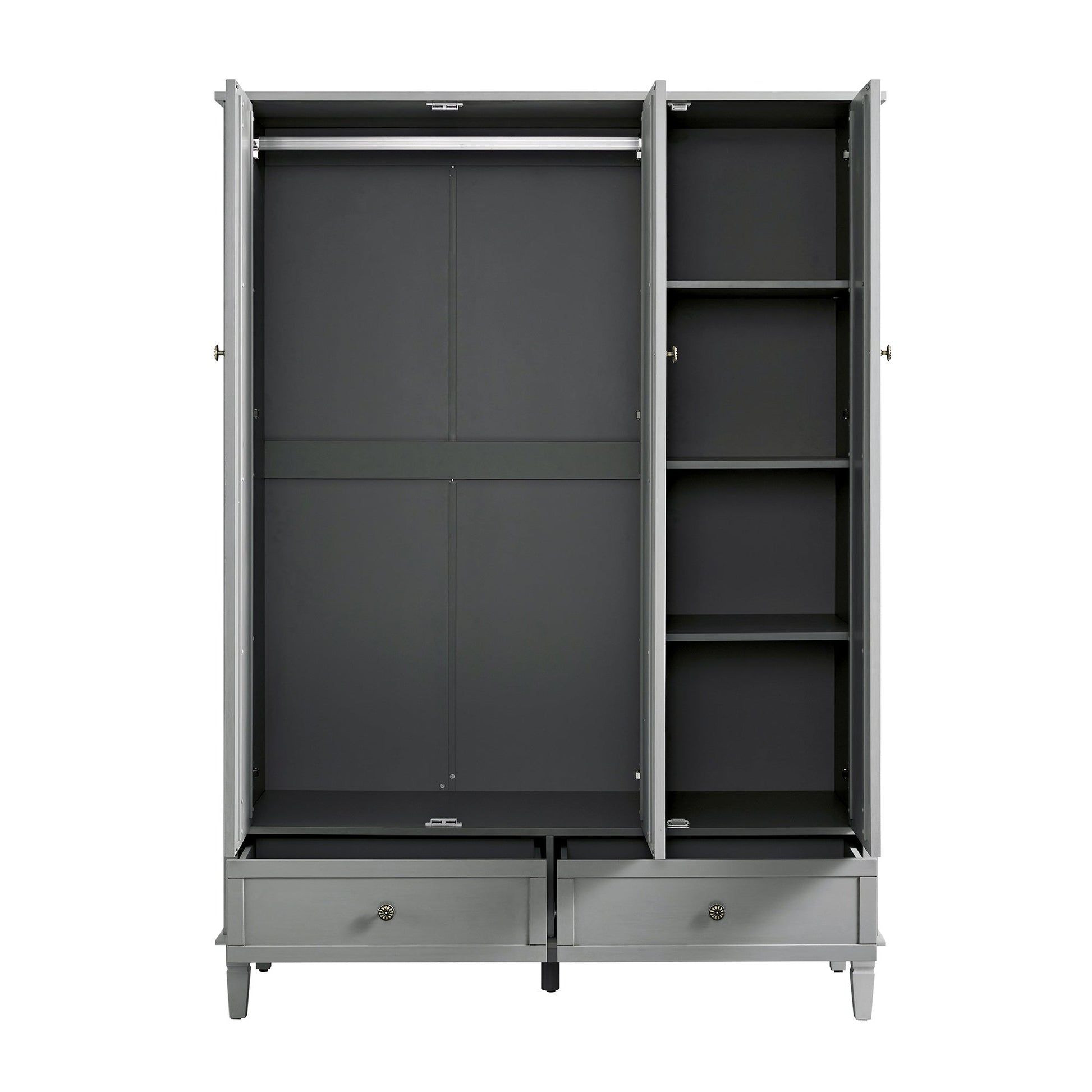 Orné et serein en présence, notre placard triple Chantilly en gris moyen réunit de beaux détails et un espace de rangement généreux en parfaite harmonie.