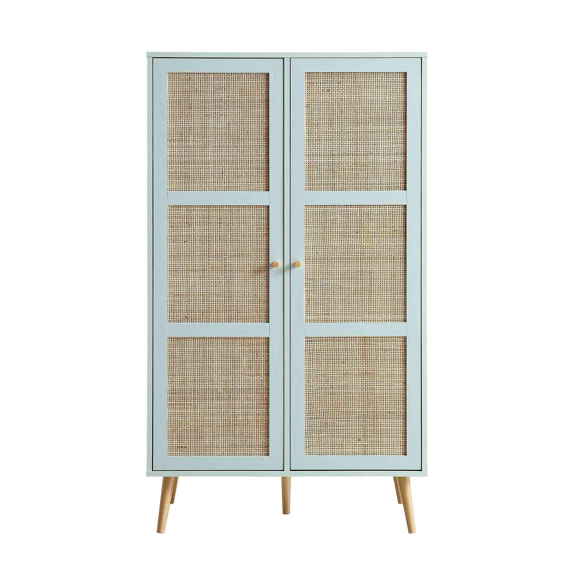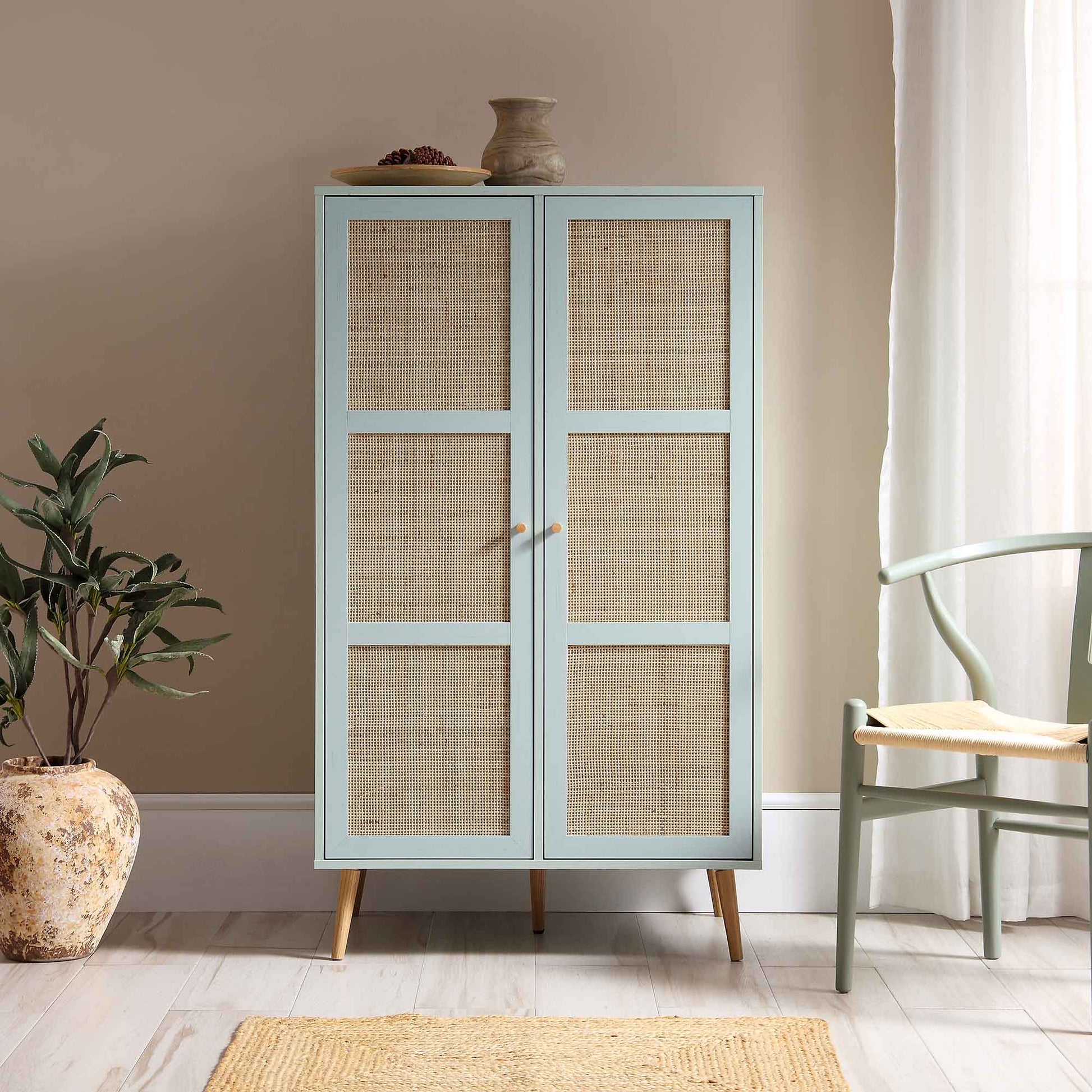 Armoire double compacte en rotin tressé Frances, vert menthe