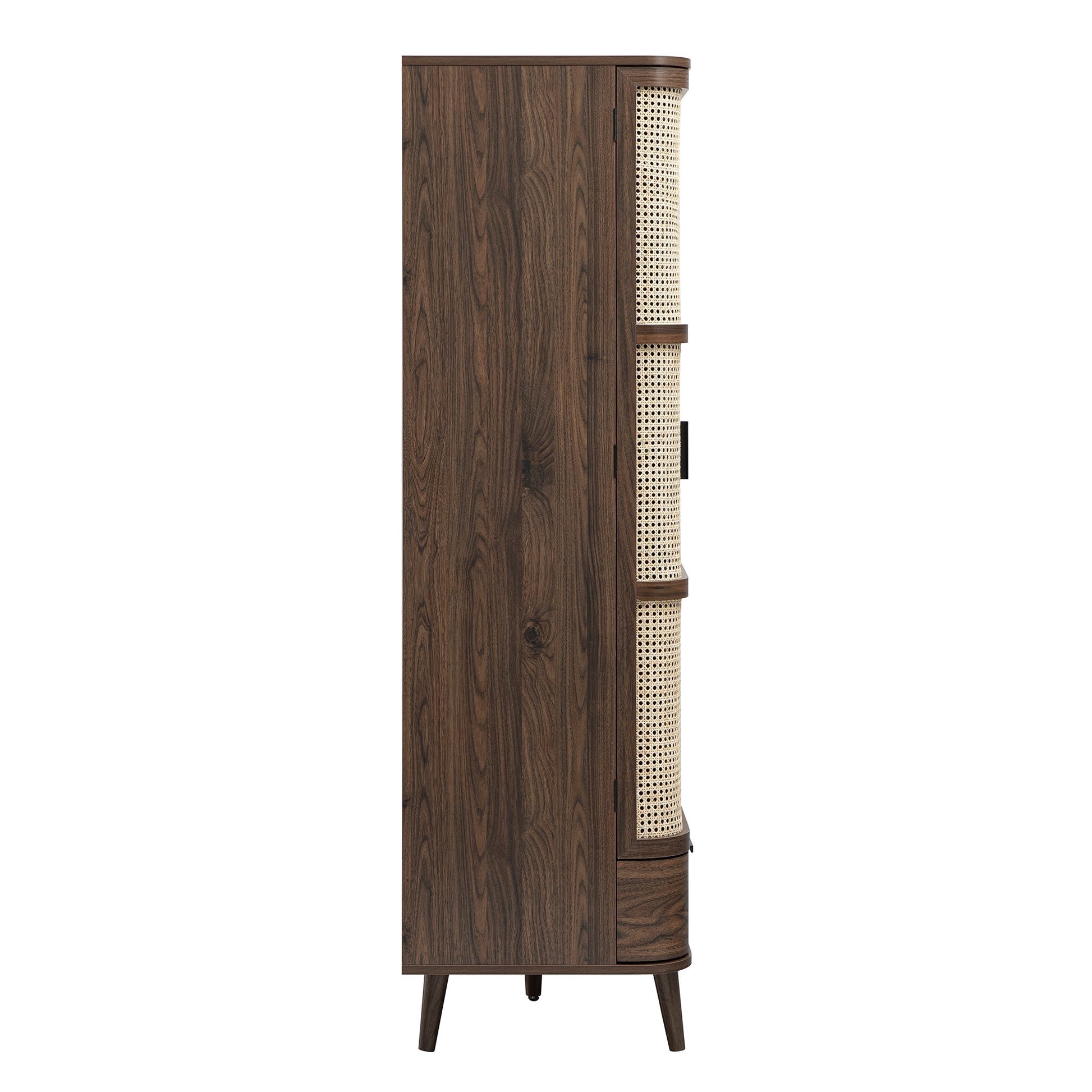 Avec sa riche finition couleur noyer et ses panneaux en rotin naturel, ce placard apporte chaleur, texture et sophistication décontractée à n'importe quelle chambre.