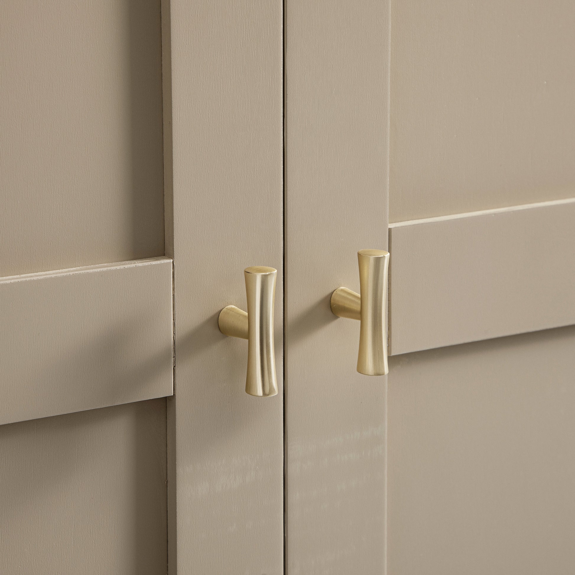 Les portes à double panneau s'ouvrent en douceur pour révéler l'espace intérieur, tandis que les poignées en T dorées ajoutent une touche subtile de raffinement.