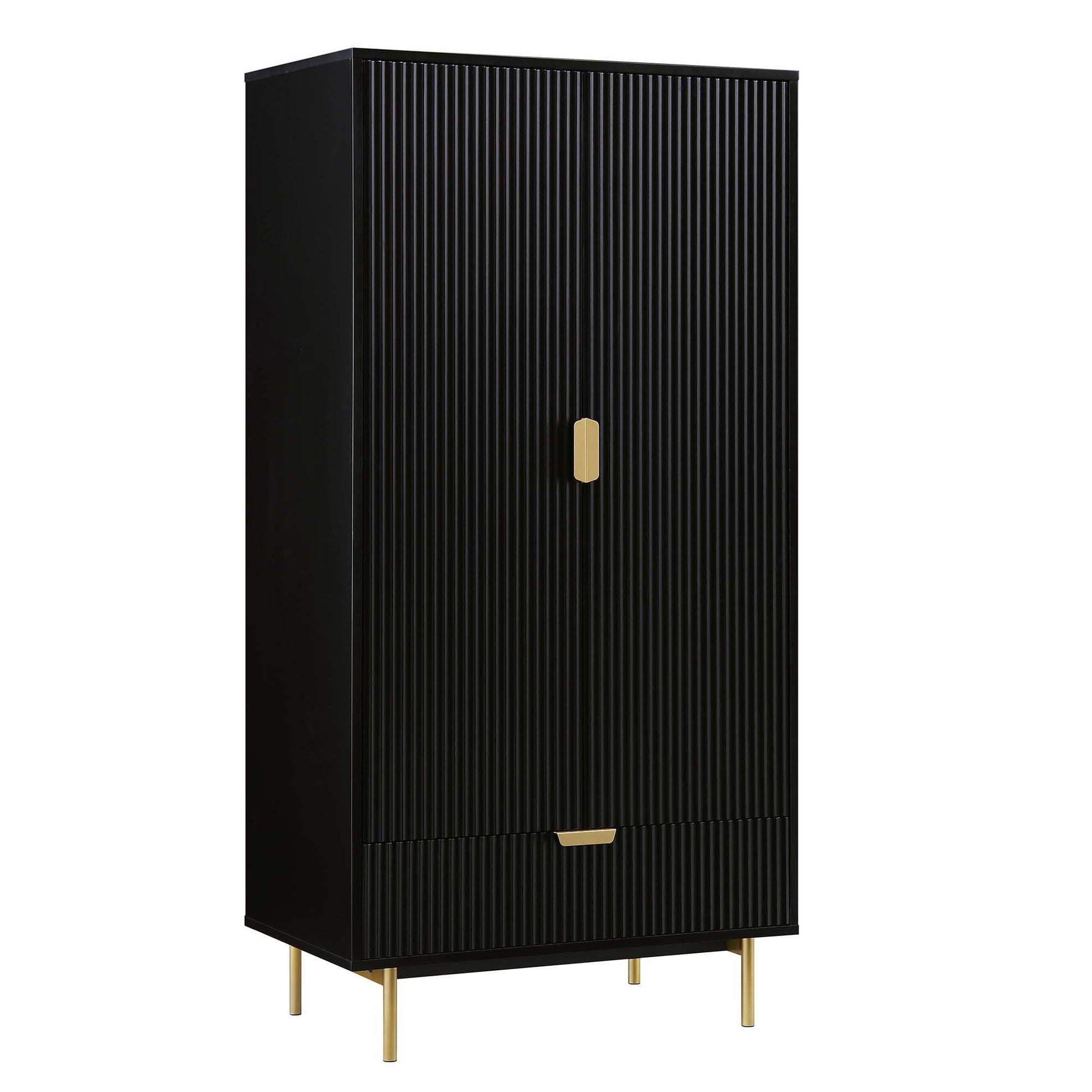 Armoire double Richmond à sillons avec tiroir, noir mat