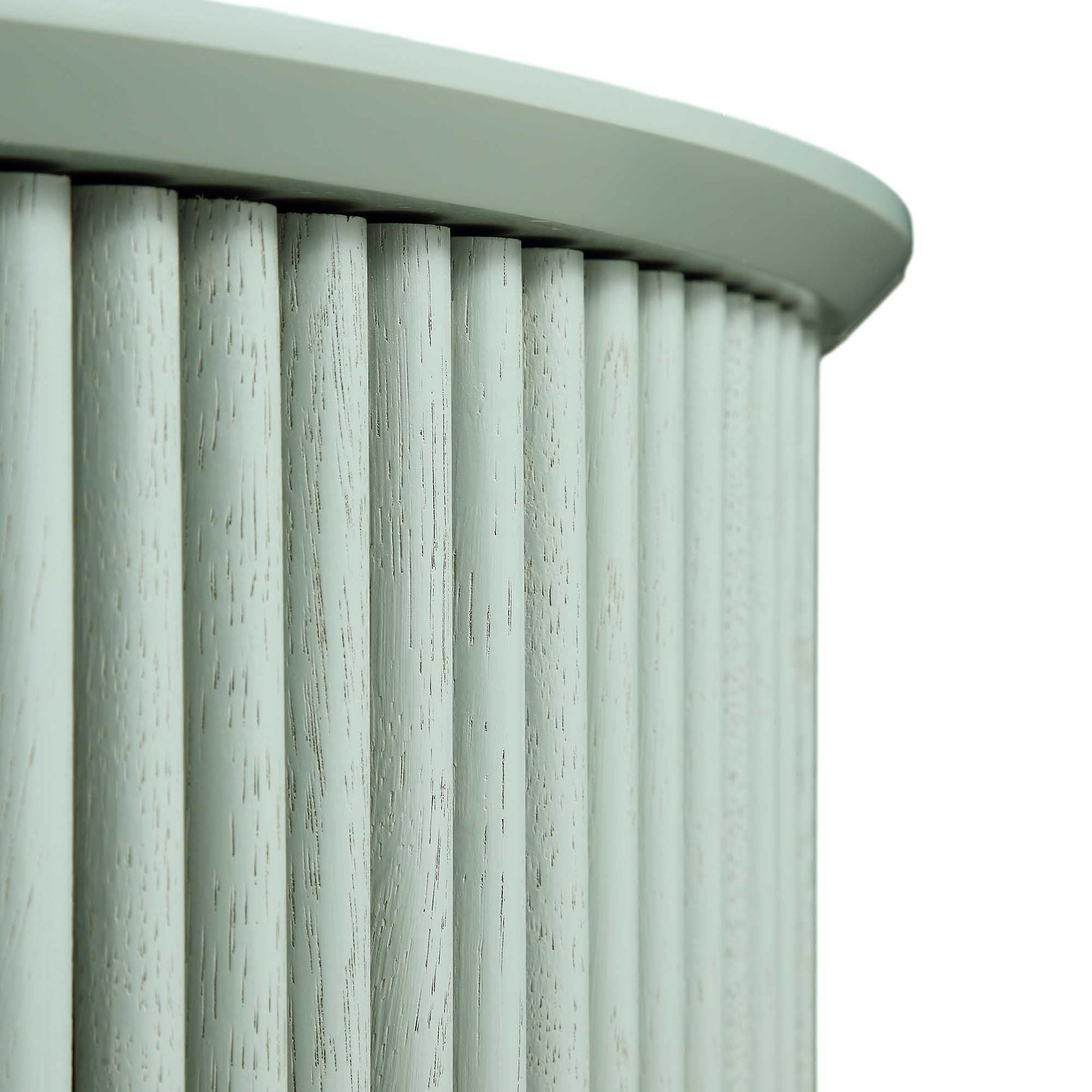 Fabriquée en bois massif et en placage de chêne et finie avec une peinture vert sauge , chaque table possède ses grains et nœuds naturels uniques.