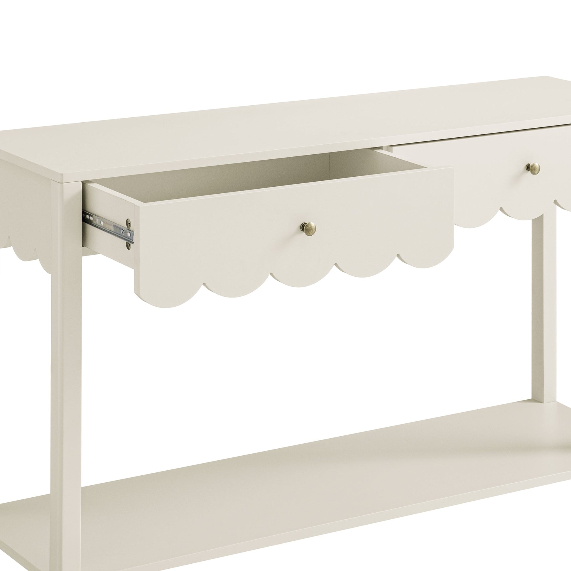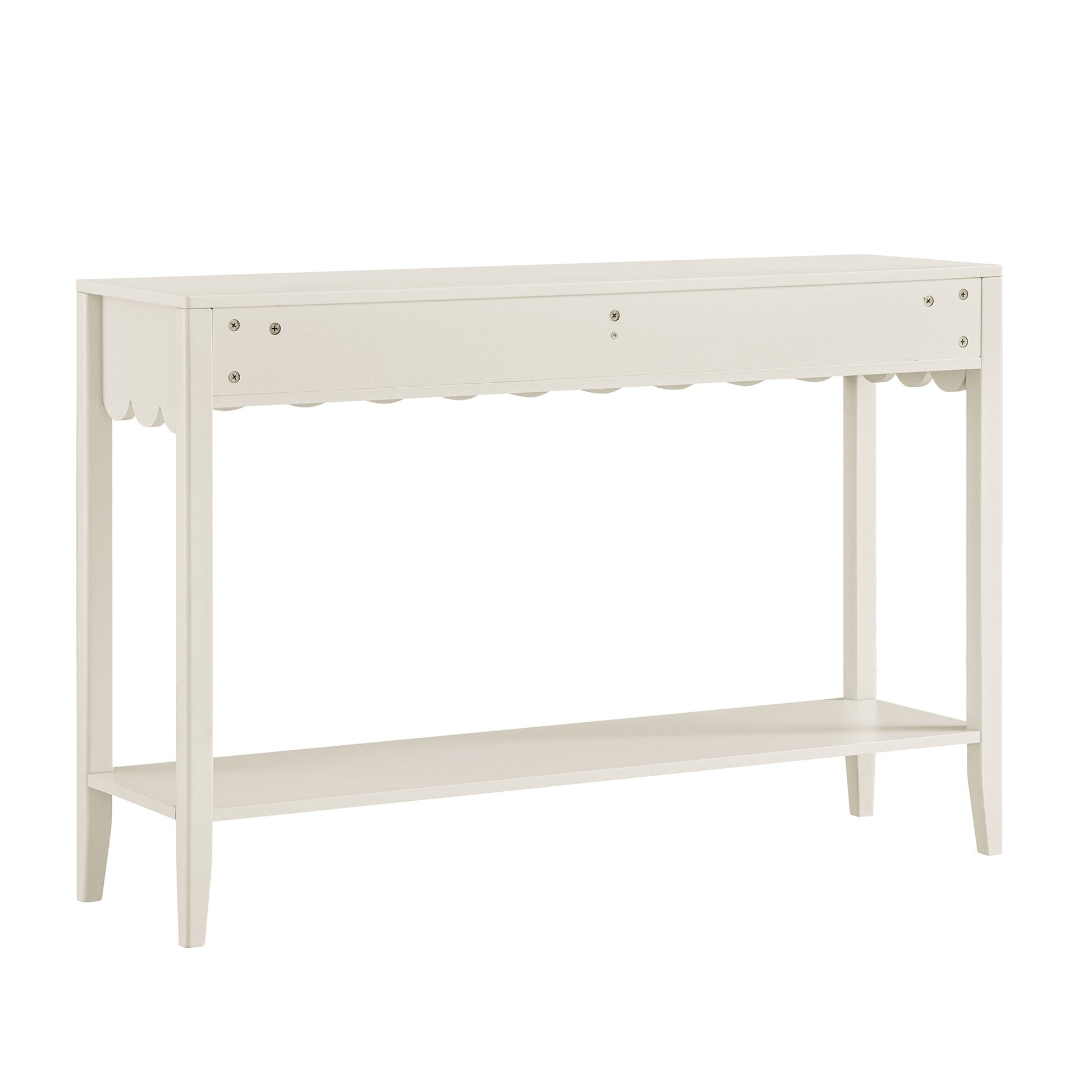 La console offre un large plateau pour exposer vos ornements préférés, tandis que l'étagère ouverte offre un espace de rangement supplémentaire.