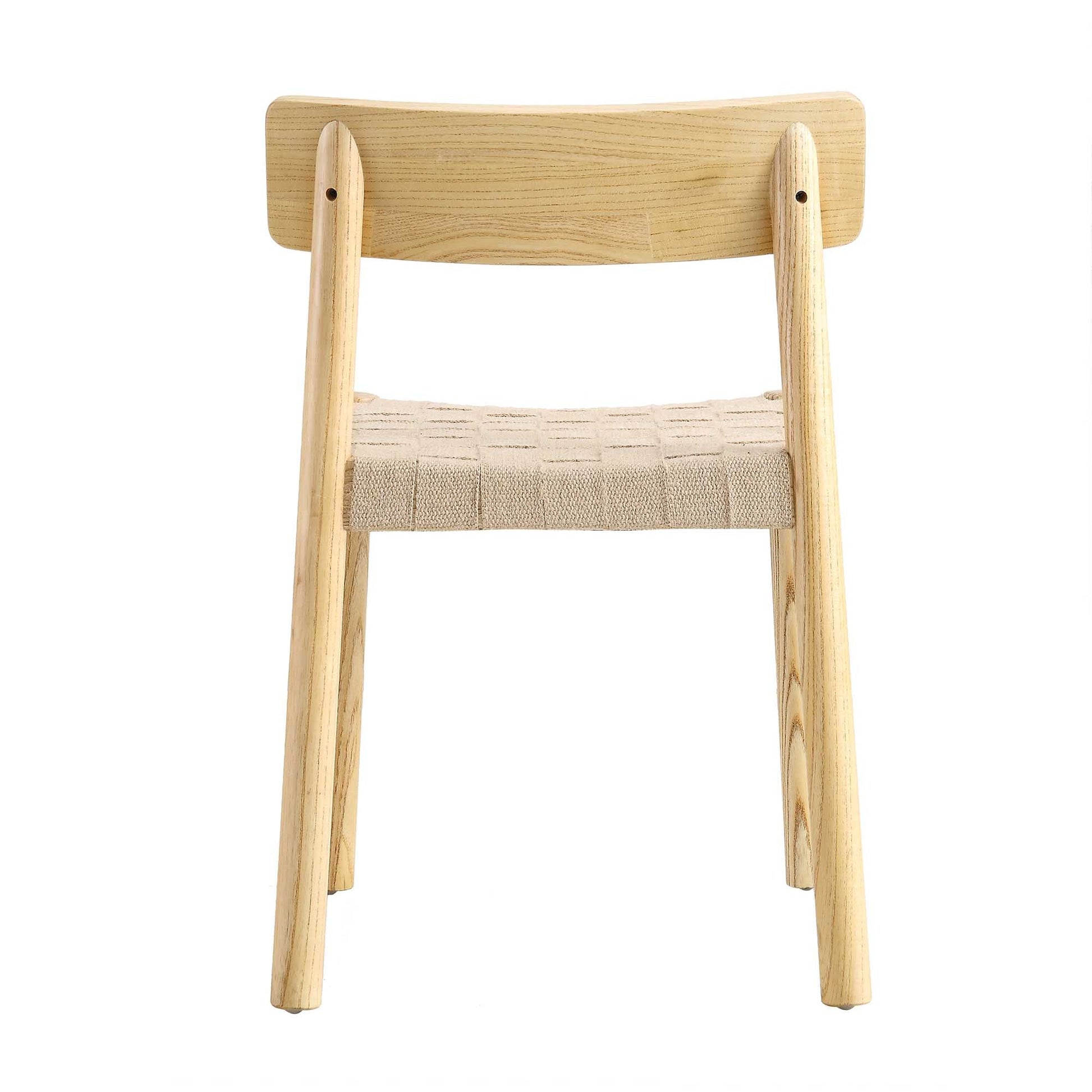 Les chaises de salle à manger en bois d'orme et jute de Ditton sont emballées dans une seule boîte