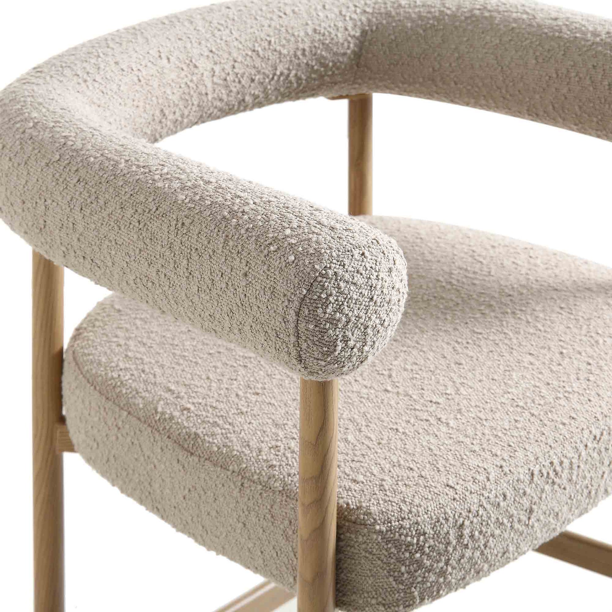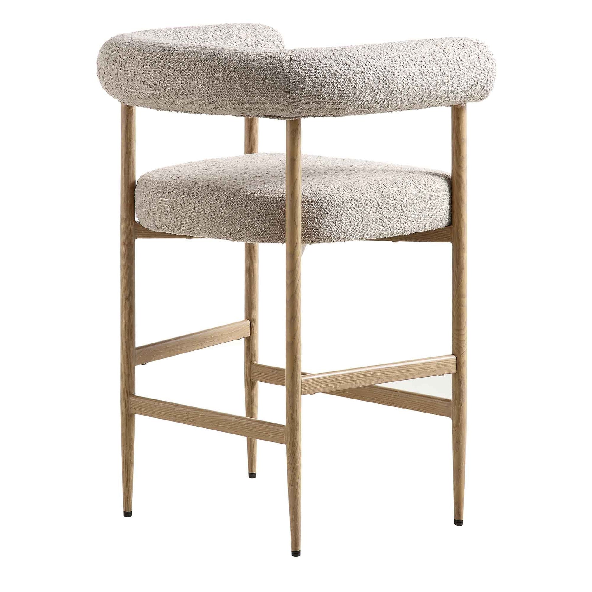 Tabouret de bar Fulbourn Taupe Boucle avec pieds effet bois naturel