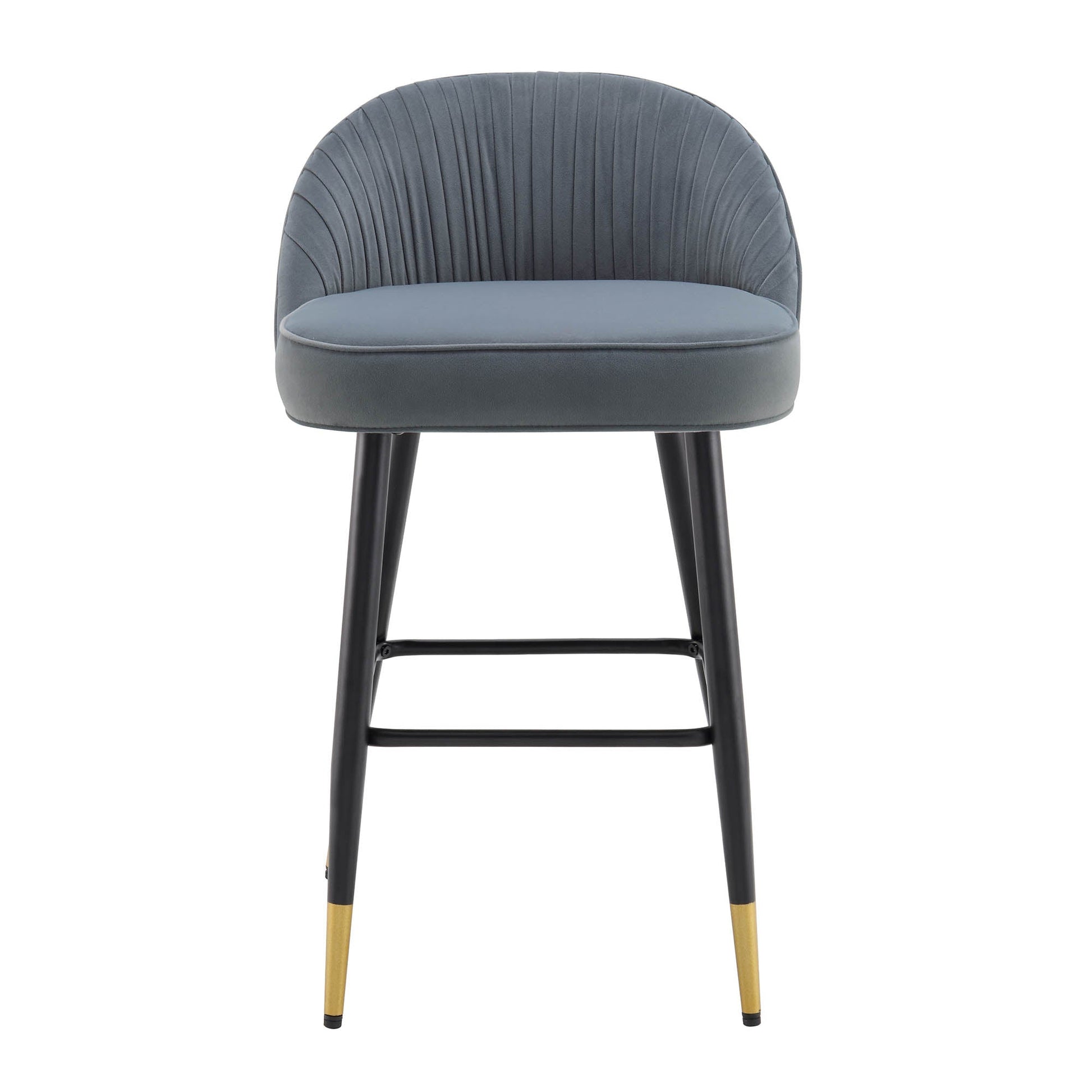 Lot de 2 tabourets de bar rembourrés en velours gris clair plissé Miyae