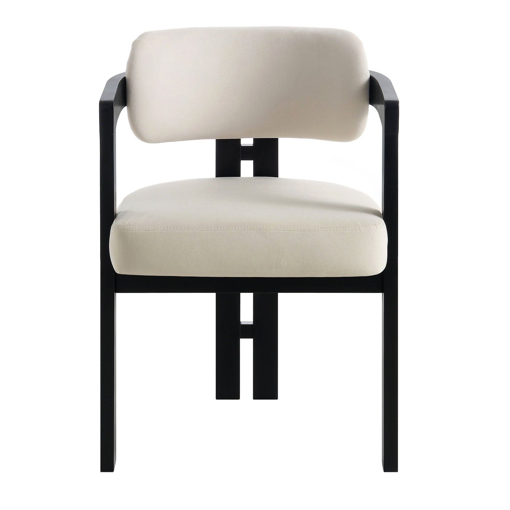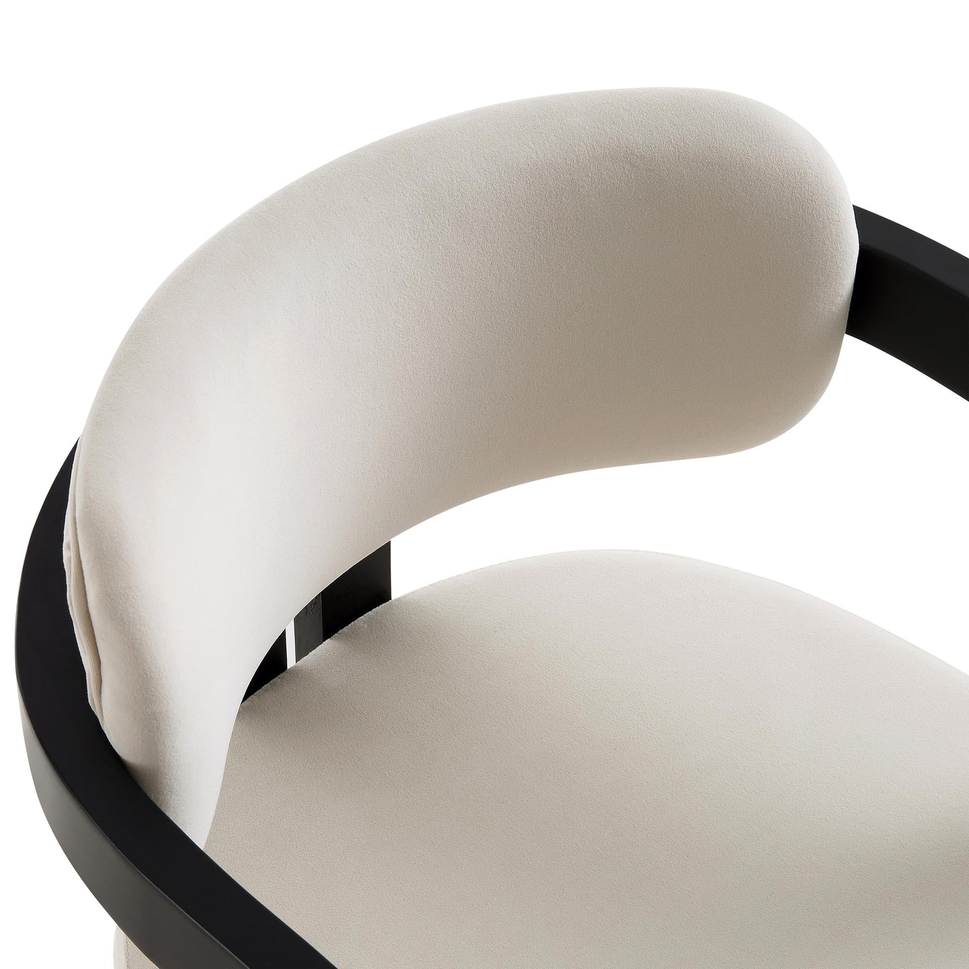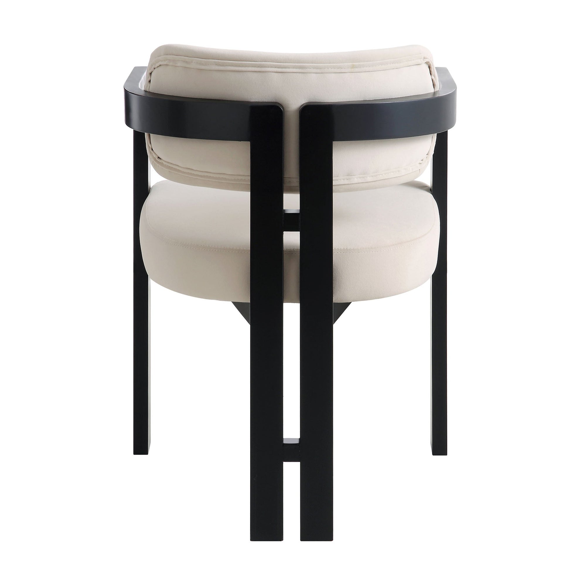 • Fabriquée en bois massif, la structure de la chaise a été peinte en noir mat, associée à un siège et un dossier rembourrés en velours beige champagne moelleux pour un look classique.