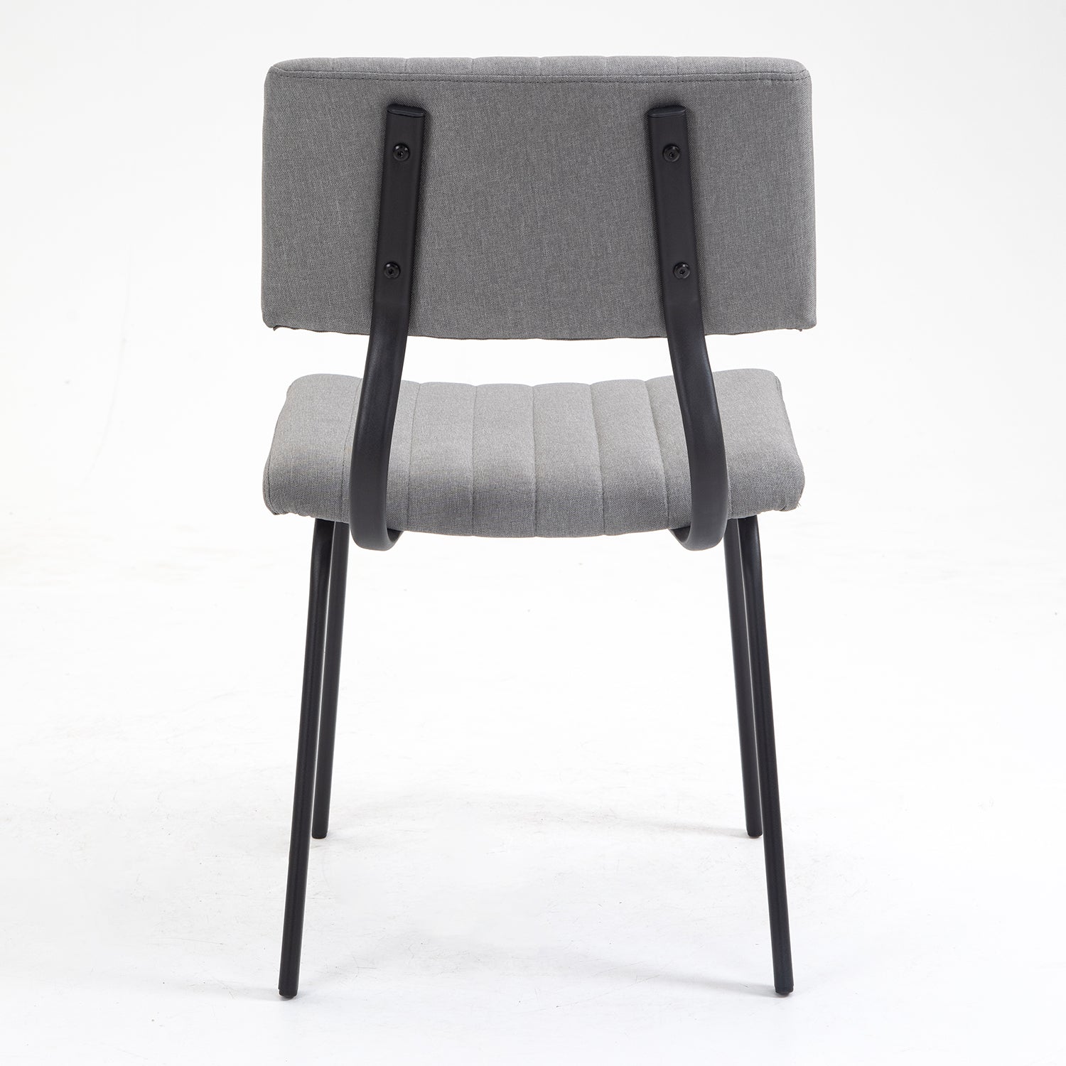 Les chaises sont recouvertes de tissu en lin gris clair et disposent d'un rembourrage sur le dossier et l'assise qui est en outre soutenu par le cadre en acier enduit de poudre.