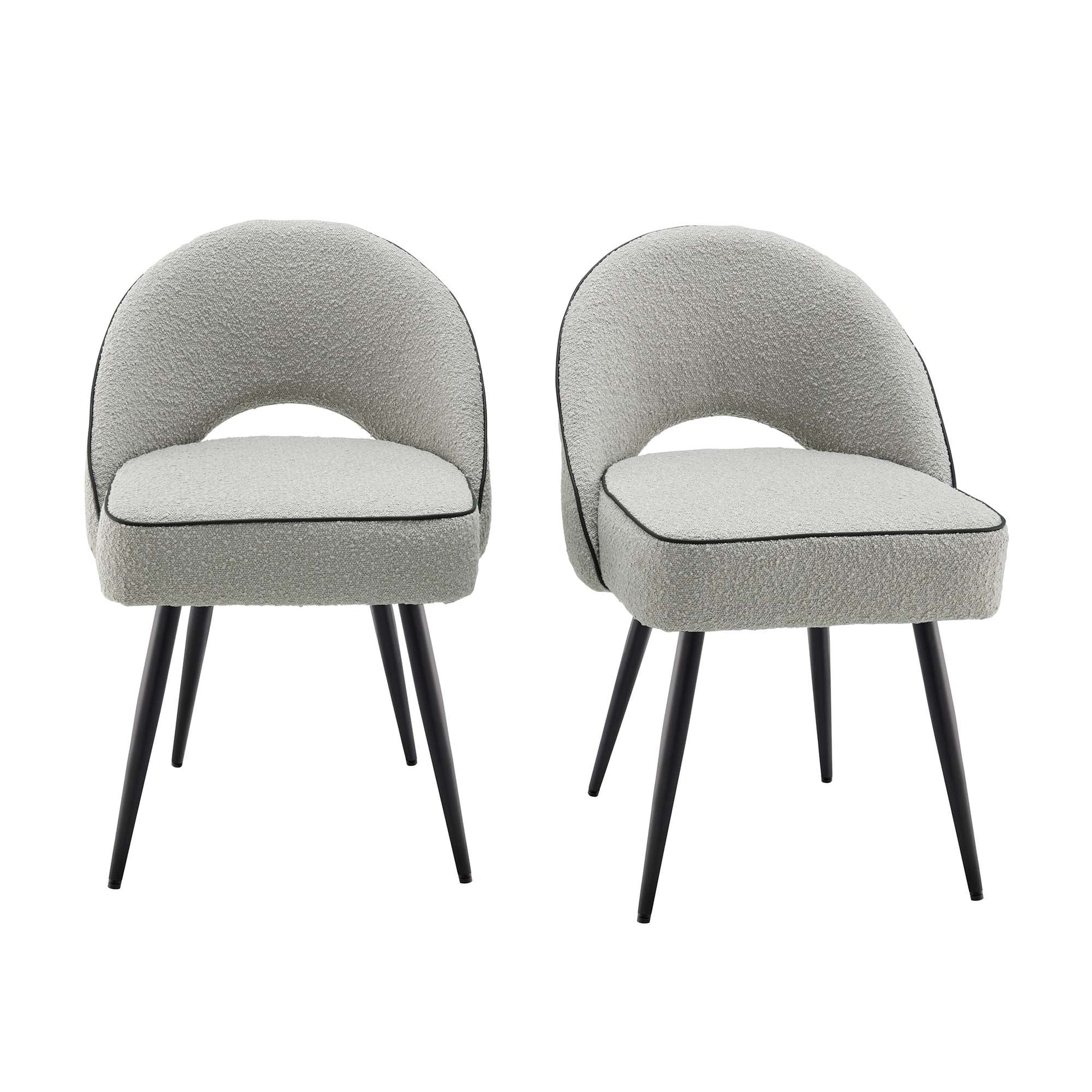 L'ensemble comprend 2 chaises de salle à manger avec des détails de passepoil noir.