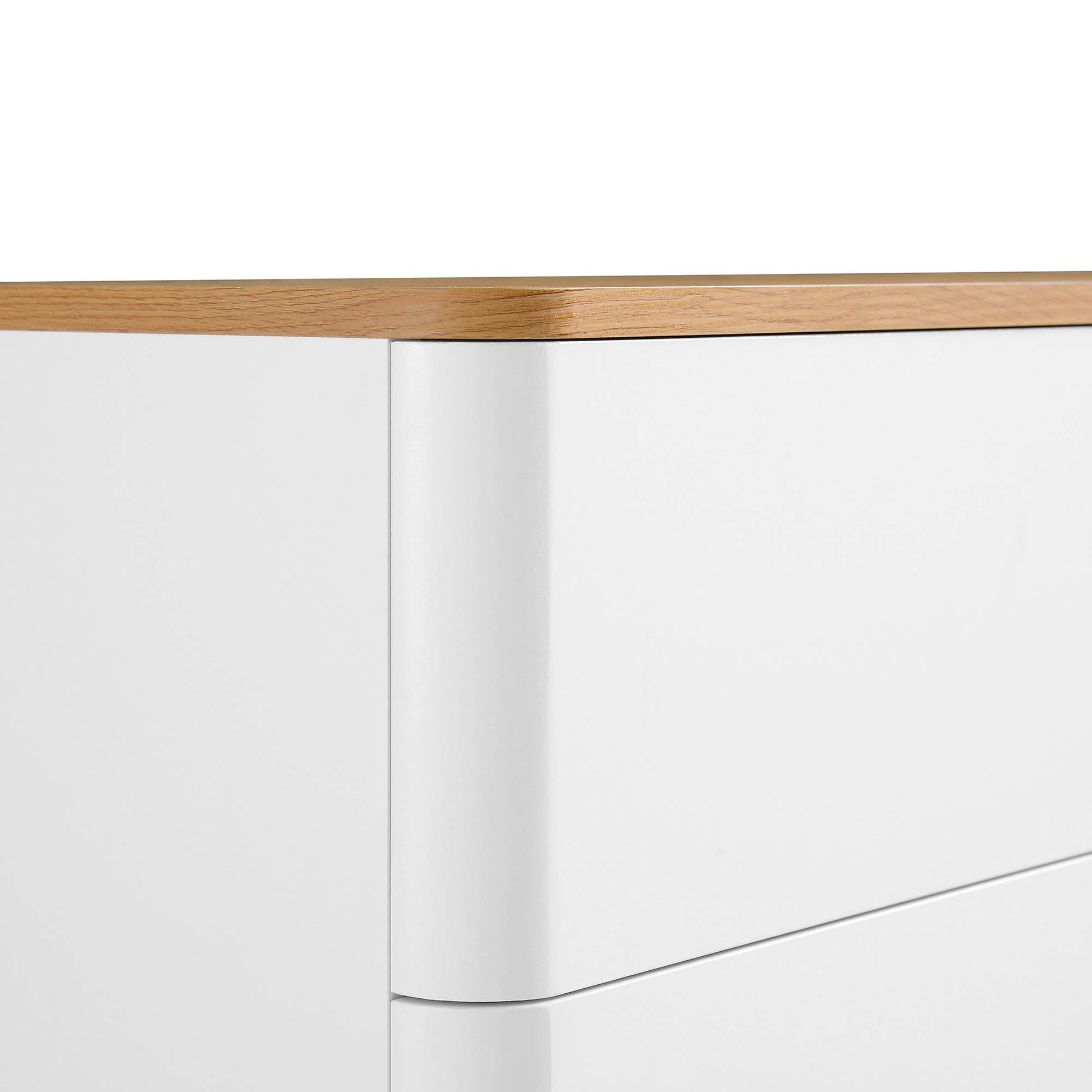 Les bords incurvés sont coordonnés avec le cadre blanc mat et le plateau en chêne.