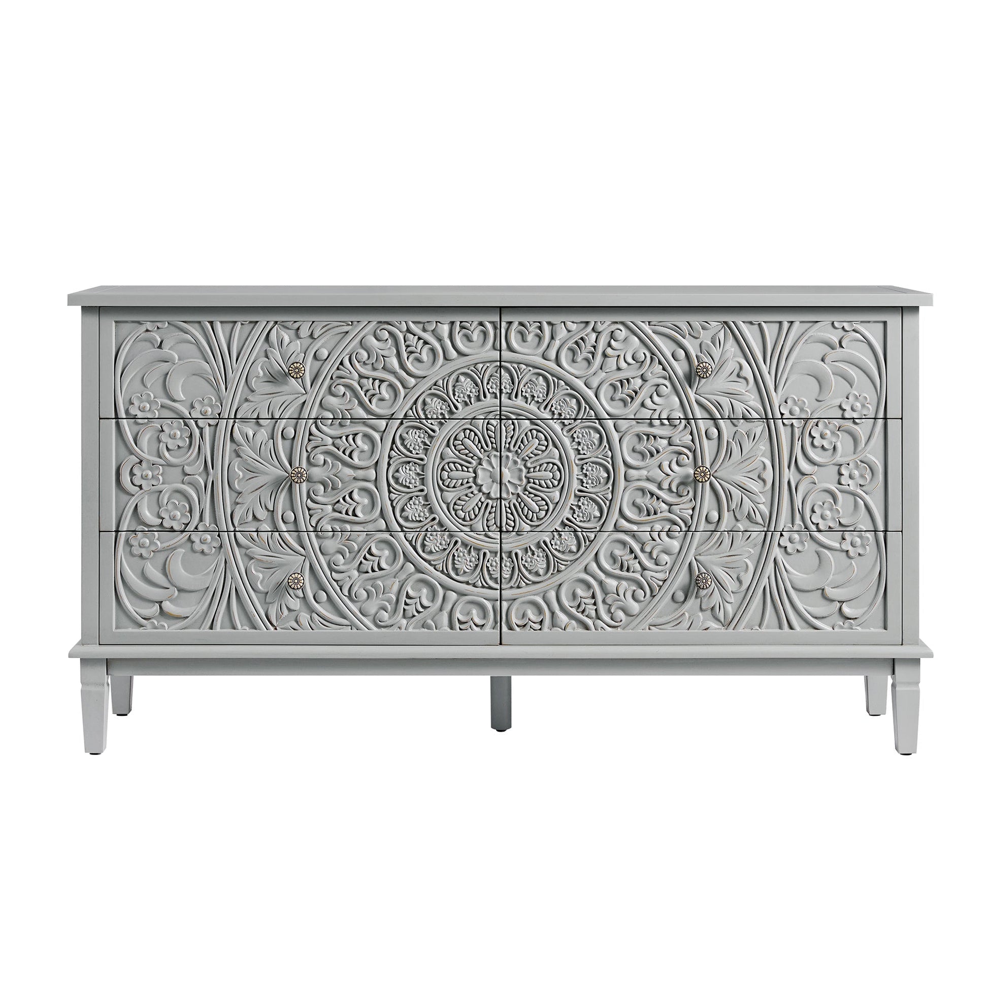 L'art et l'utilité se marient à merveille dans la commode large à 6 tiroirs Chantilly, désormais disponible dans une finition gris moyen intemporelle.