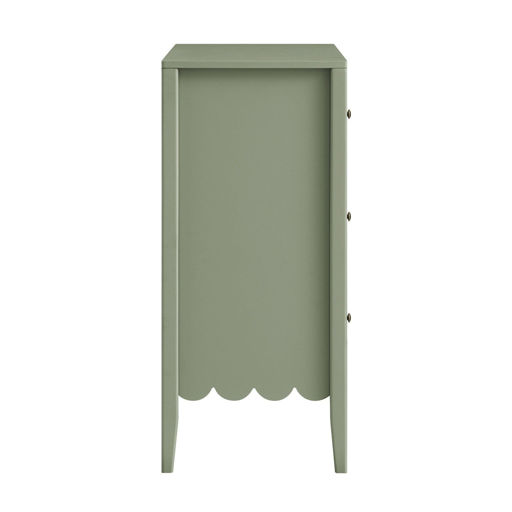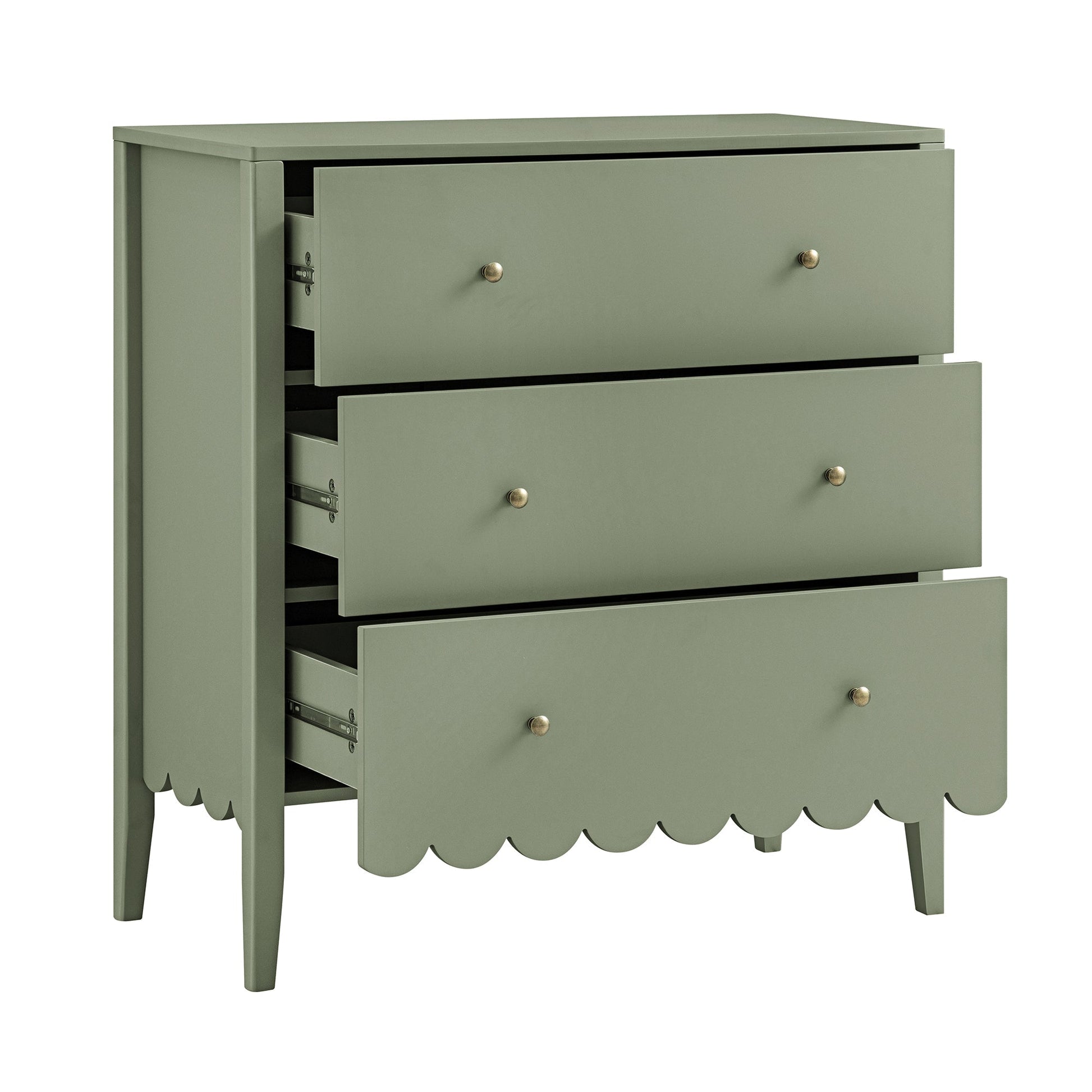 Commode 3 tiroirs Henley à bords festonnés, vert sauge