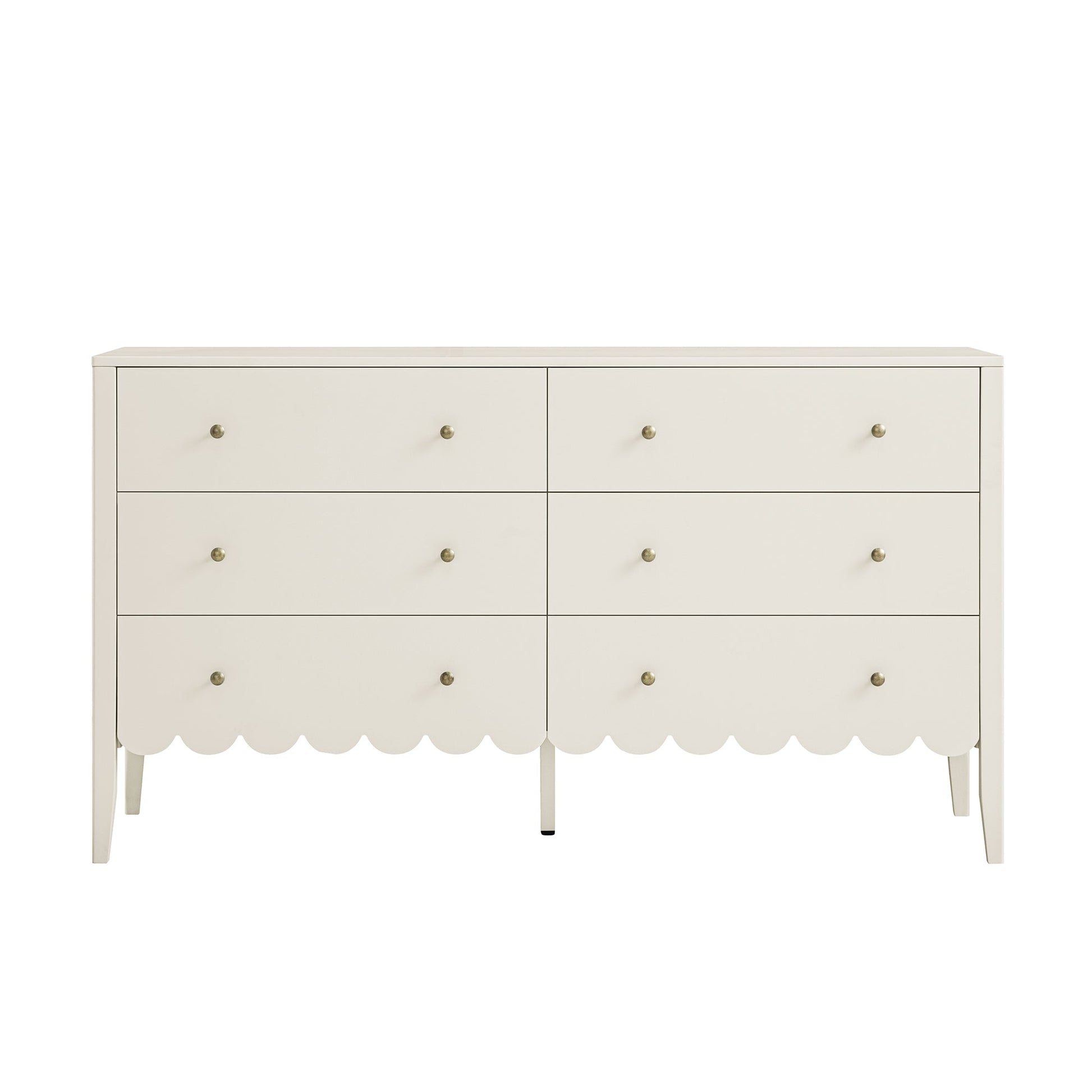 Complétez le look : illustré avec la commode large à 6 tiroirs à bords festonnés Henley, sable clair, se trouve notre tapis traditionnel en laine touffeté à la main de Varanasi .