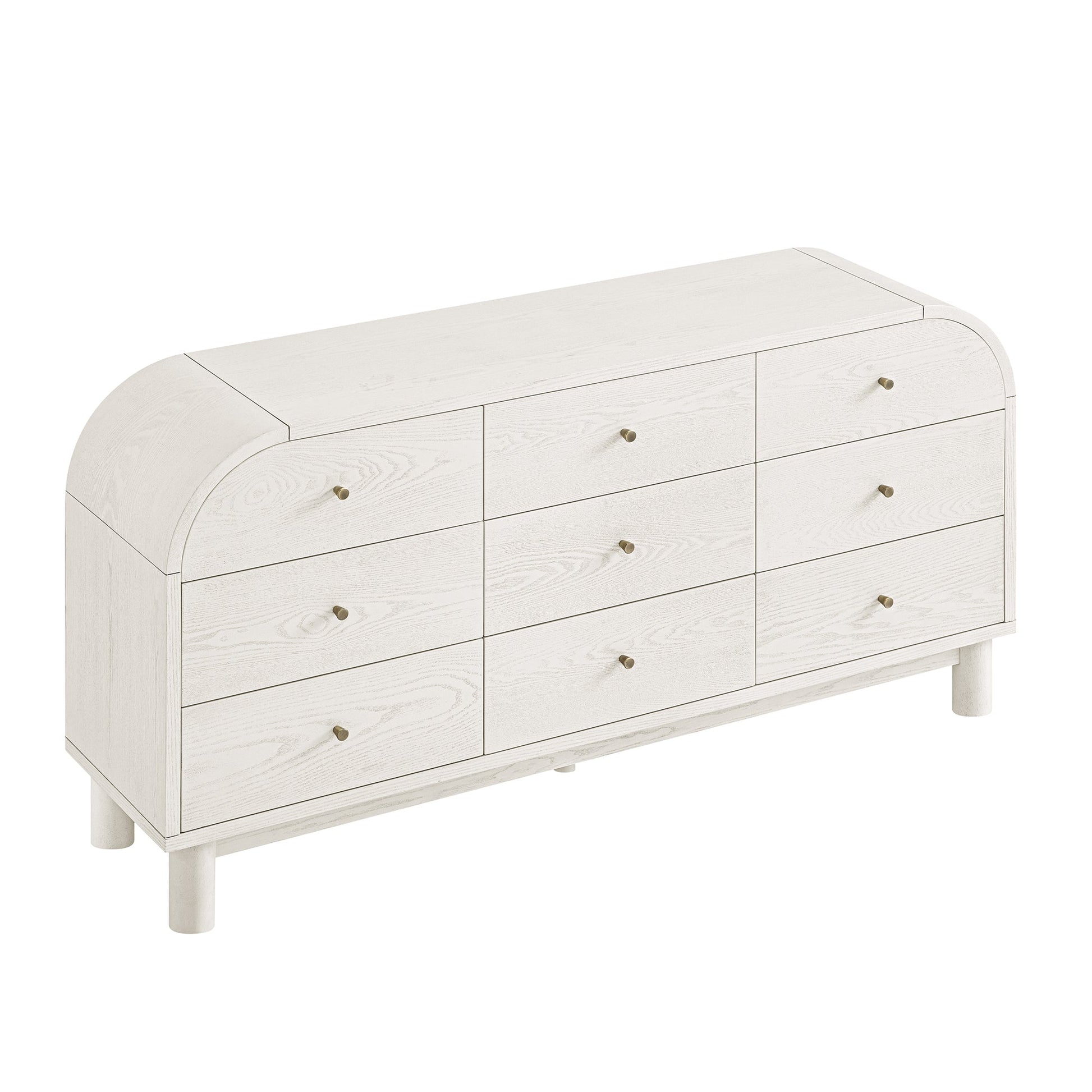 Commode Maude à 9 tiroirs, frêne blanc lavé