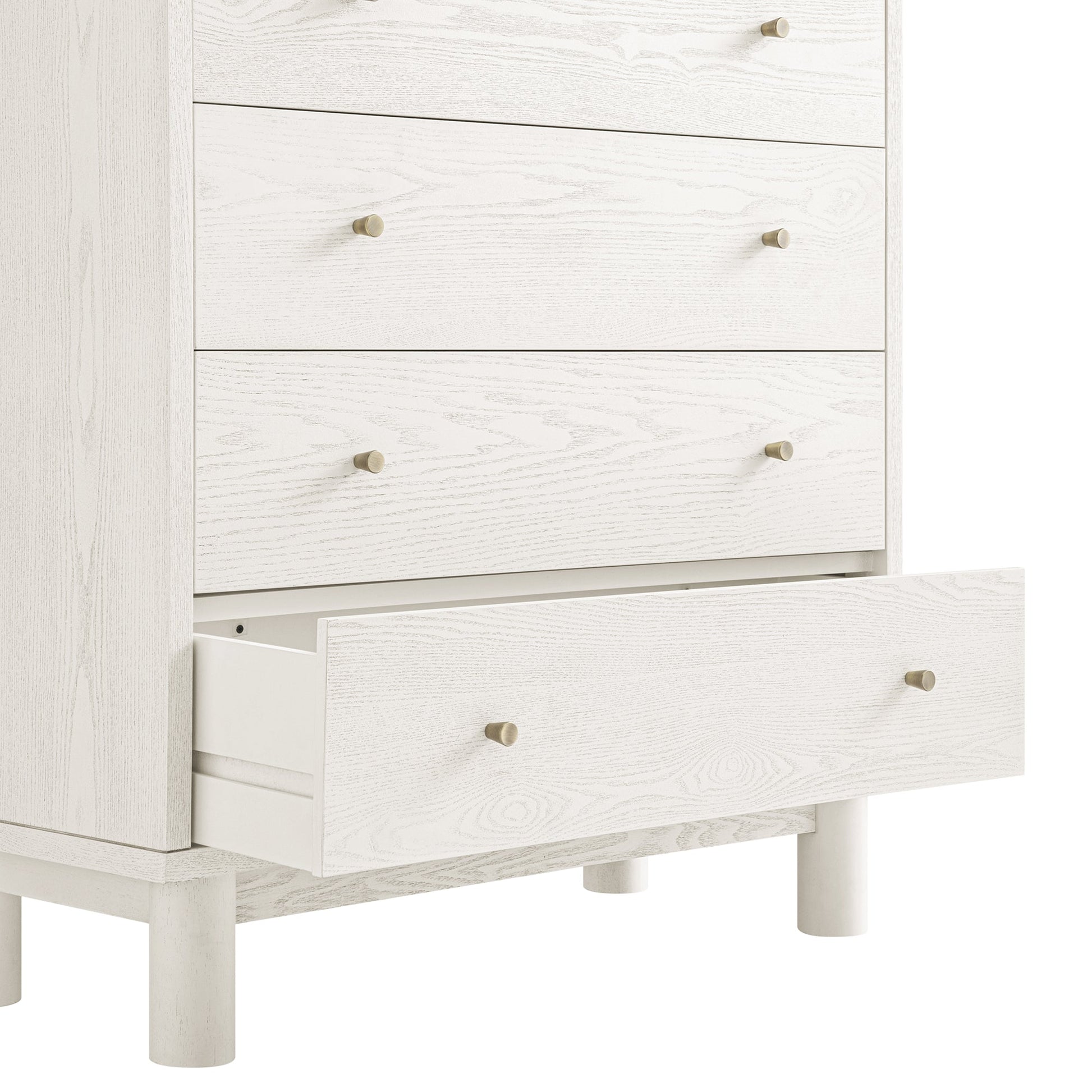 • La peinture blanche lavée à base d’eau expose le grain naturel du bois de frêne.
