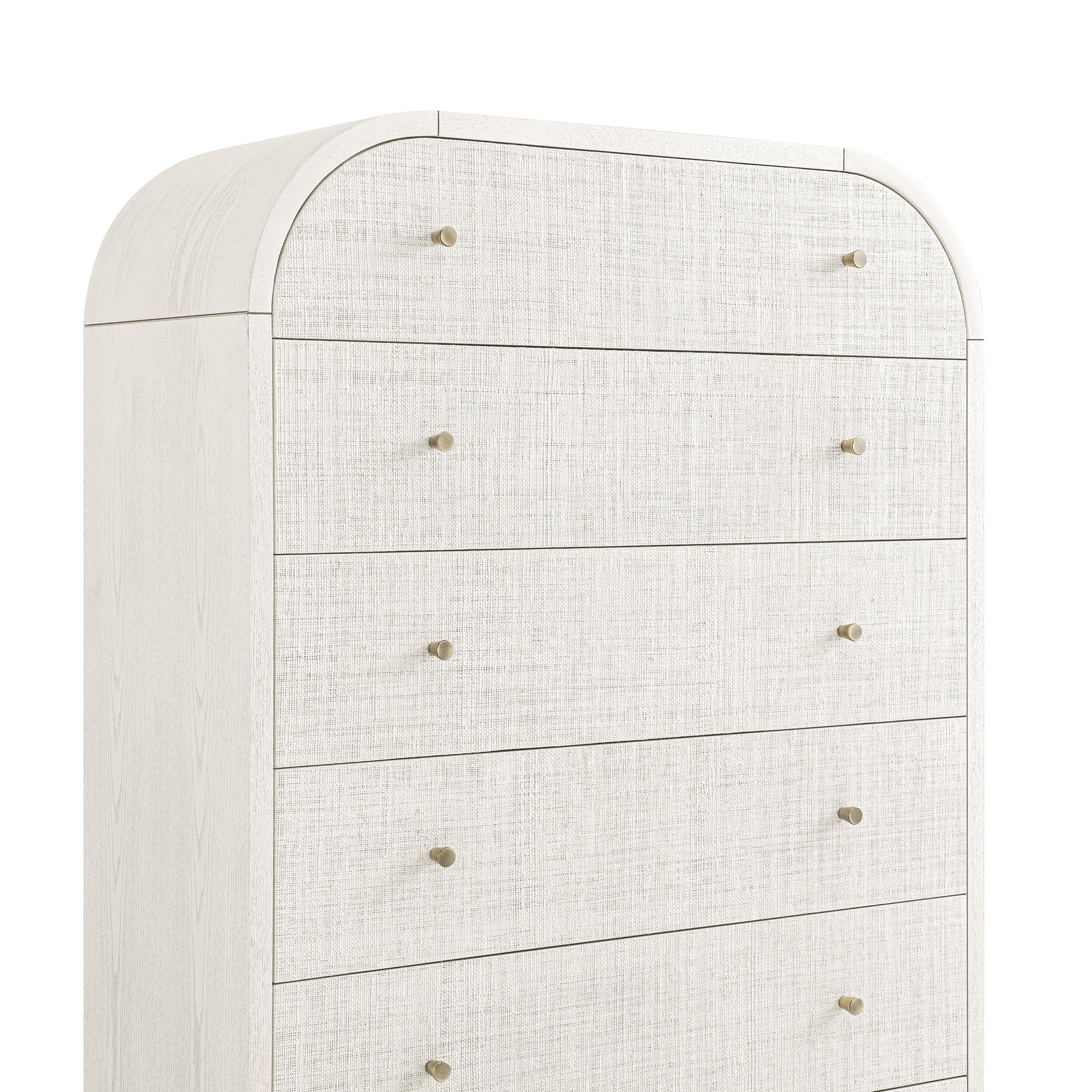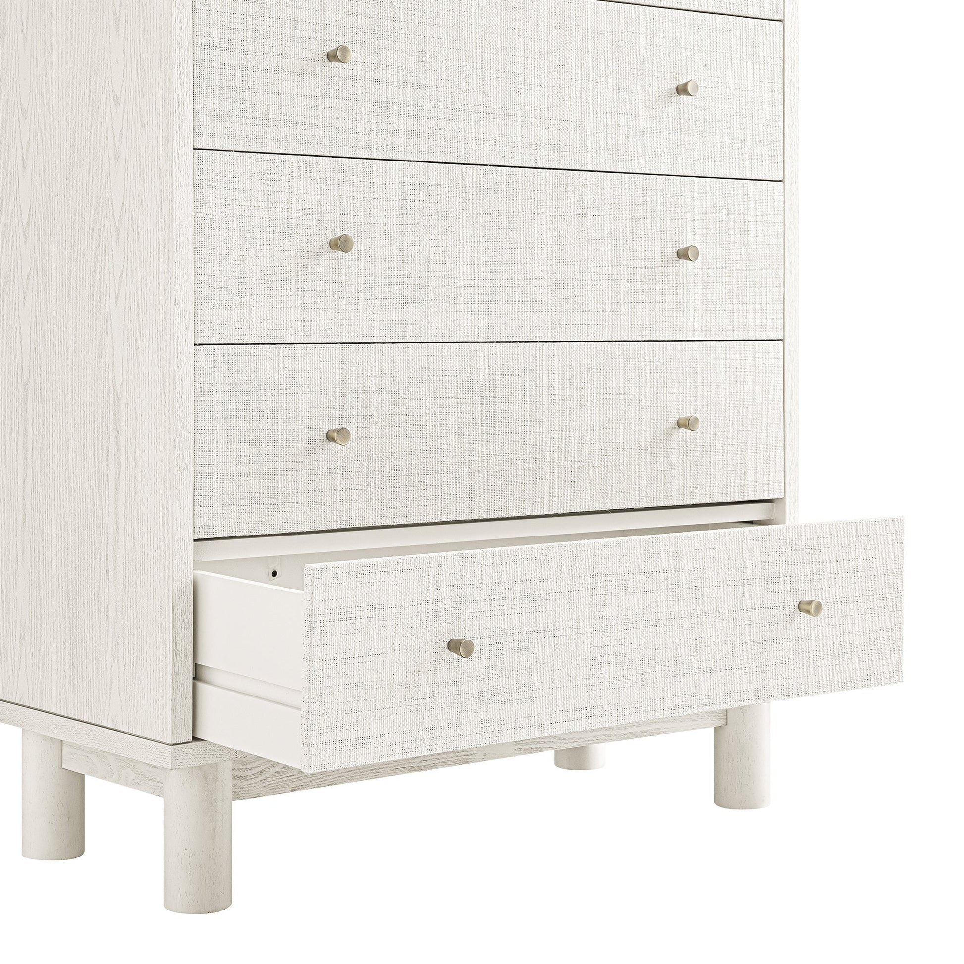 • Les tiroirs à façade en raphia blanc créent un attrait doux et aéré avec une belle texture naturelle.