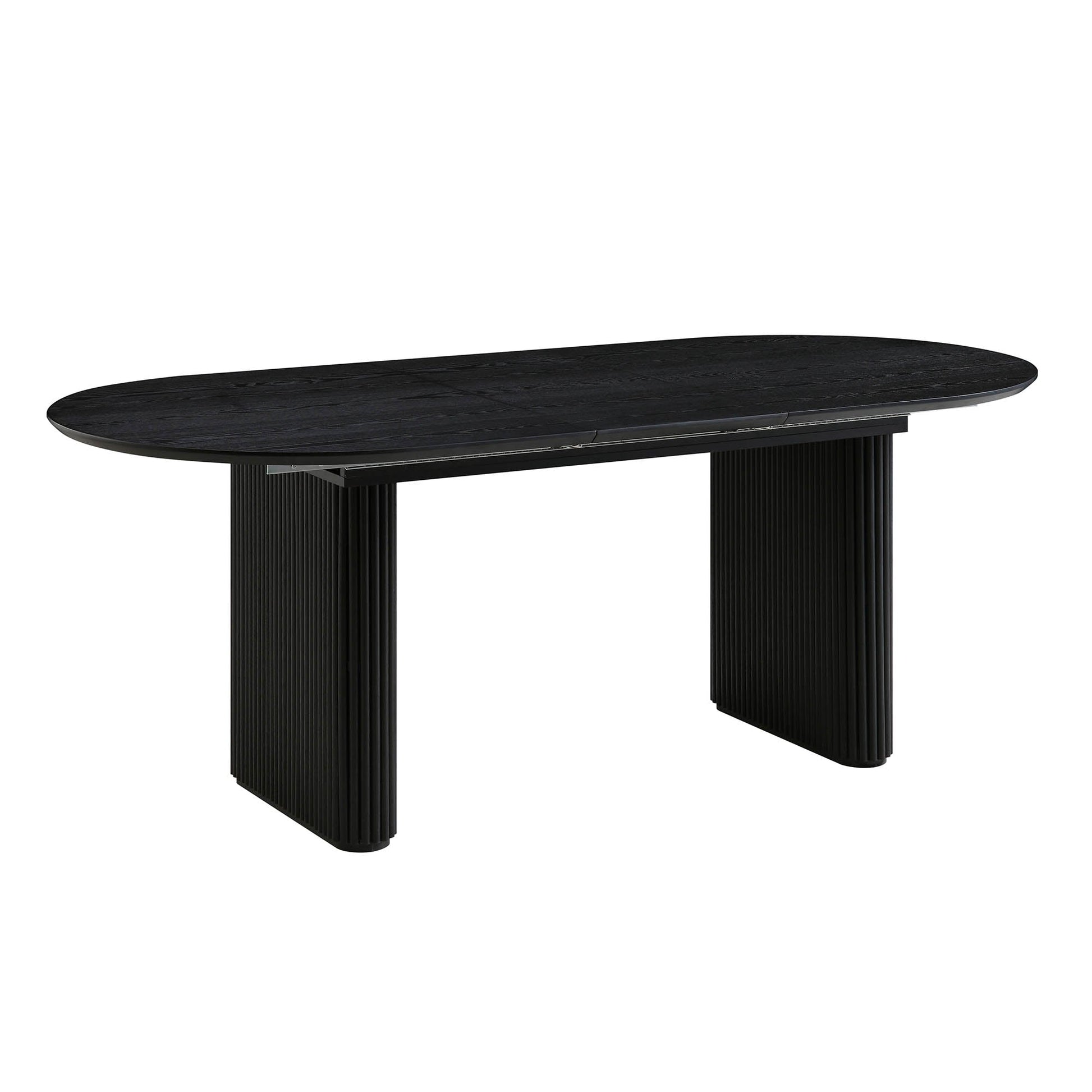 Notre table à manger Maru arbore un style Japandi contemporain avec un piètement cannelé en chêne massif. Grâce à sa conception extensible, elle peut accueillir jusqu'à 8 personnes.