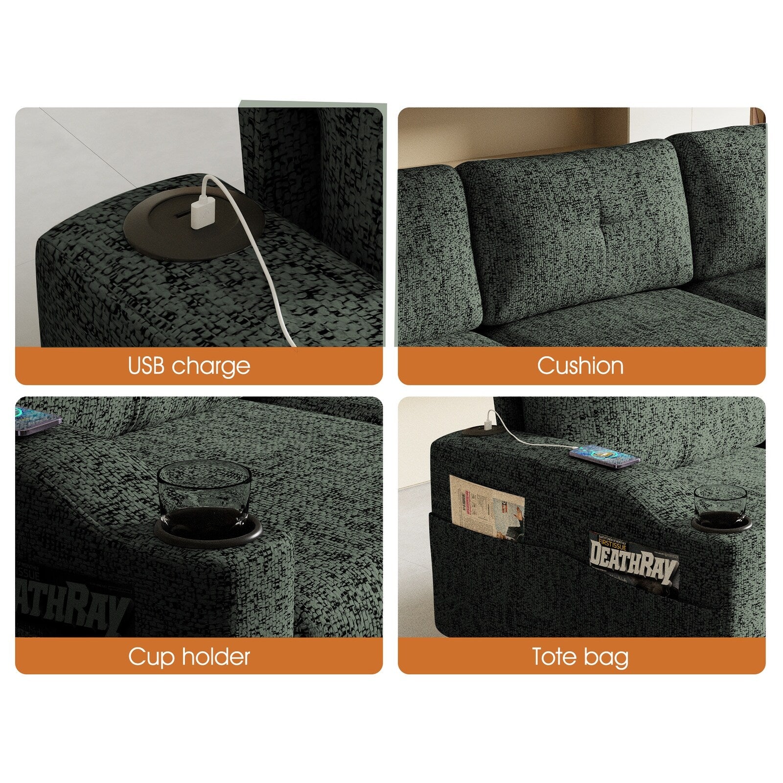 Les tabourets de canapé peuvent être placés et assortis librement Les tabourets de canapé avec fonction de rangement rendent le salon plus rangé Le canapé dispose de rangements des deux côtés, qui peuvent contenir de petits objets tels que des télécommandes