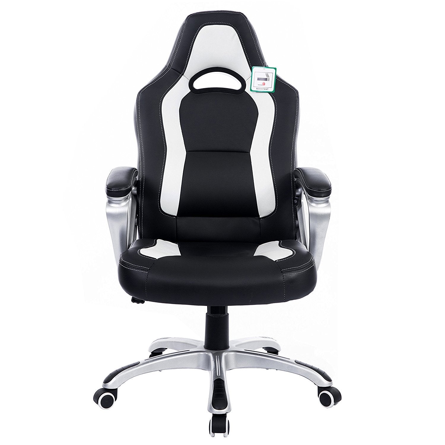 • Avec un design de style course, cette chaise de bureau à dossier haut a été recouverte de cuir PU de haute qualité en noir et blanc