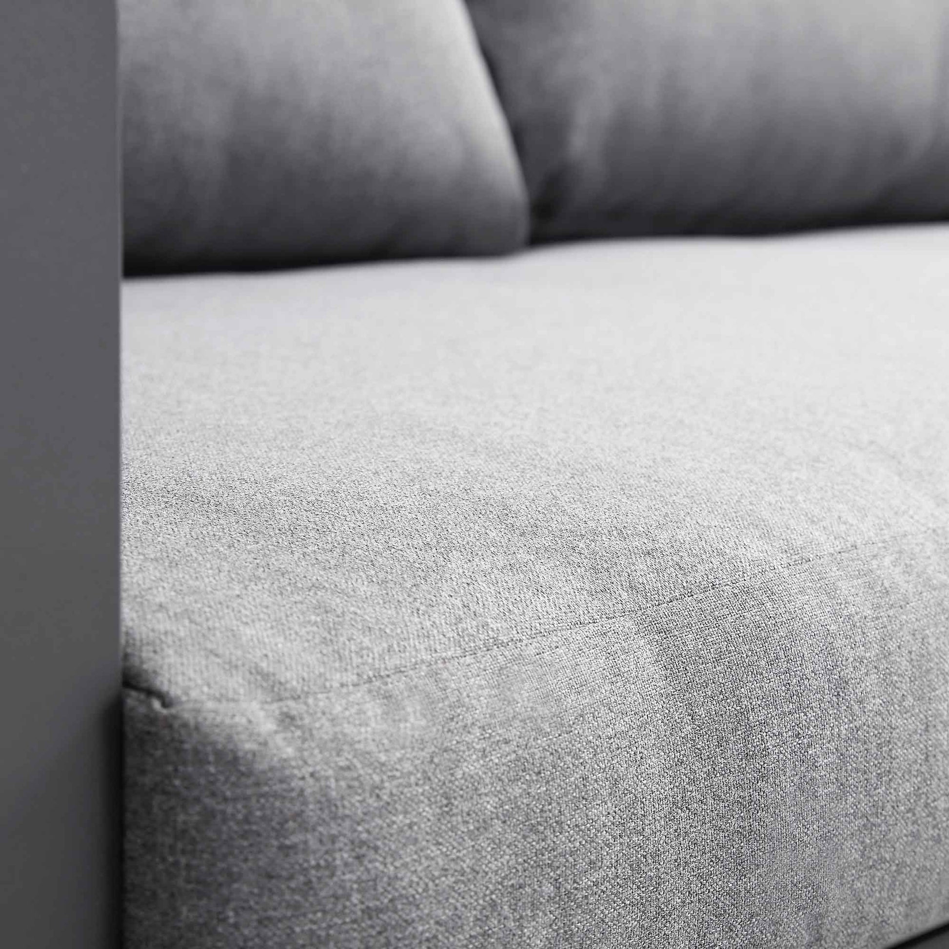 Les coussins généreusement rembourrés sont recouverts d'un tissu résistant aux UV dans une élégante couleur gris moyen pour se coordonner avec le cadre gris lavé.