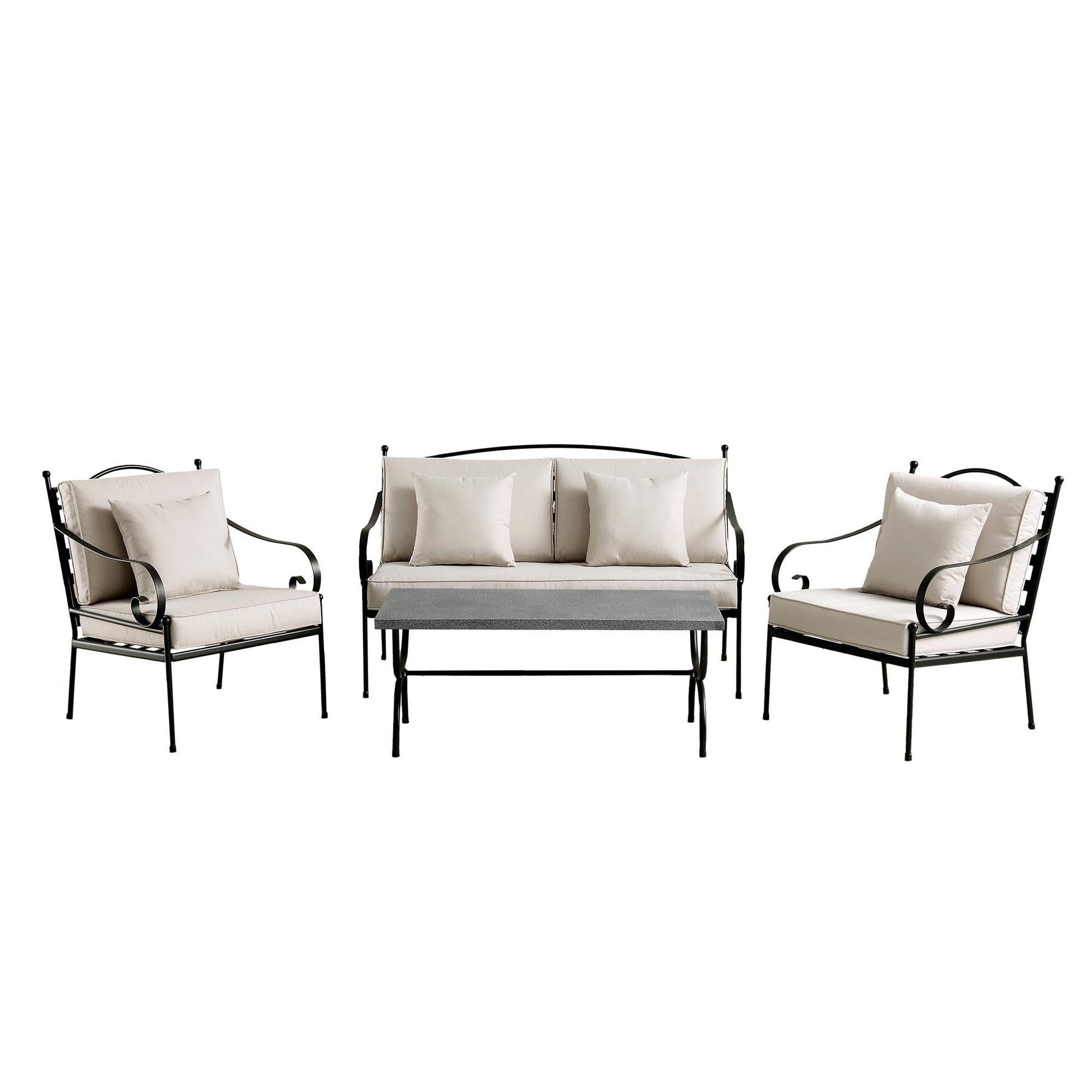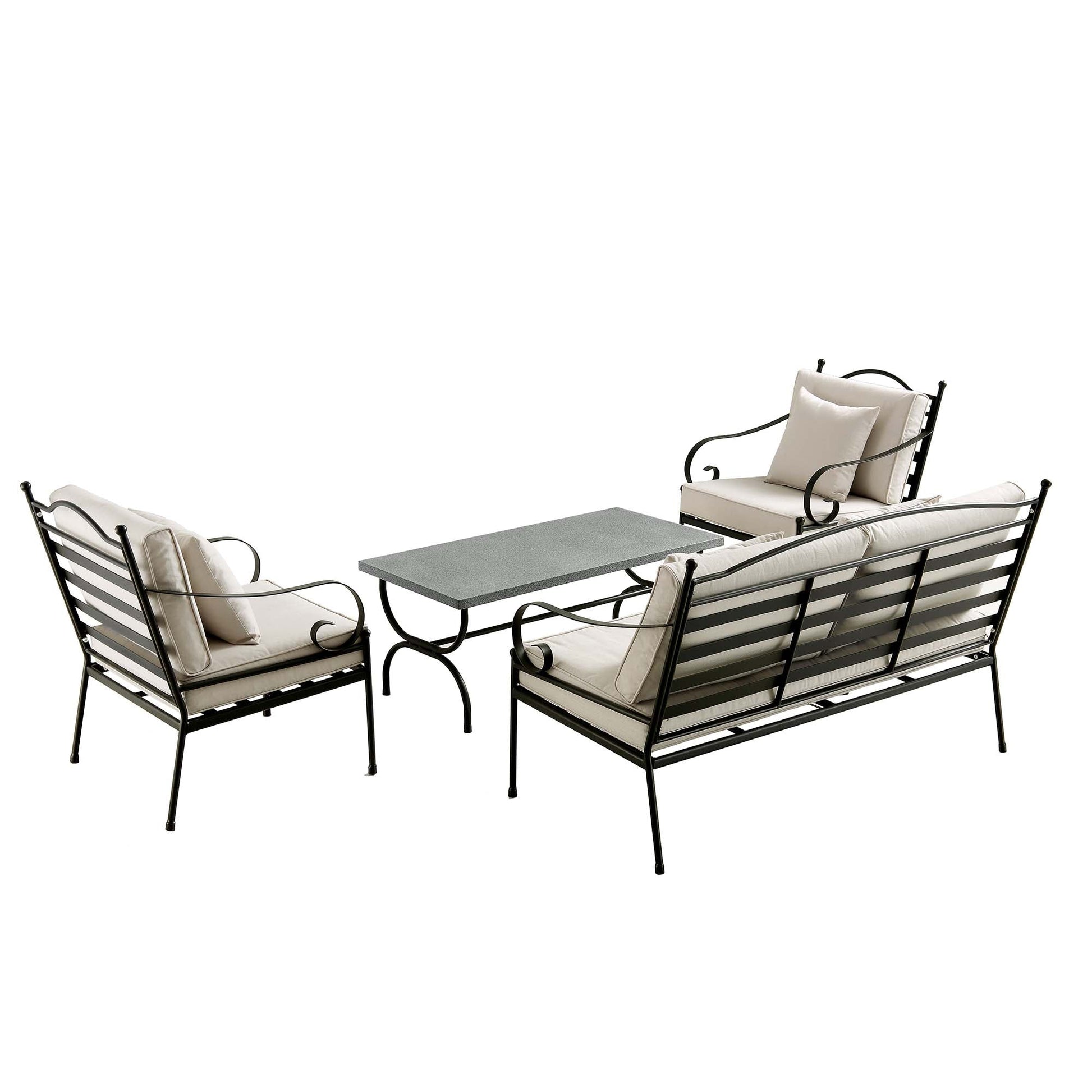 Matériel: - Cadre : Acier - Plateau de table basse : plaque d'acier effet granit - Coussins : Mousse remplie de housses en polyester 220 g/m²
