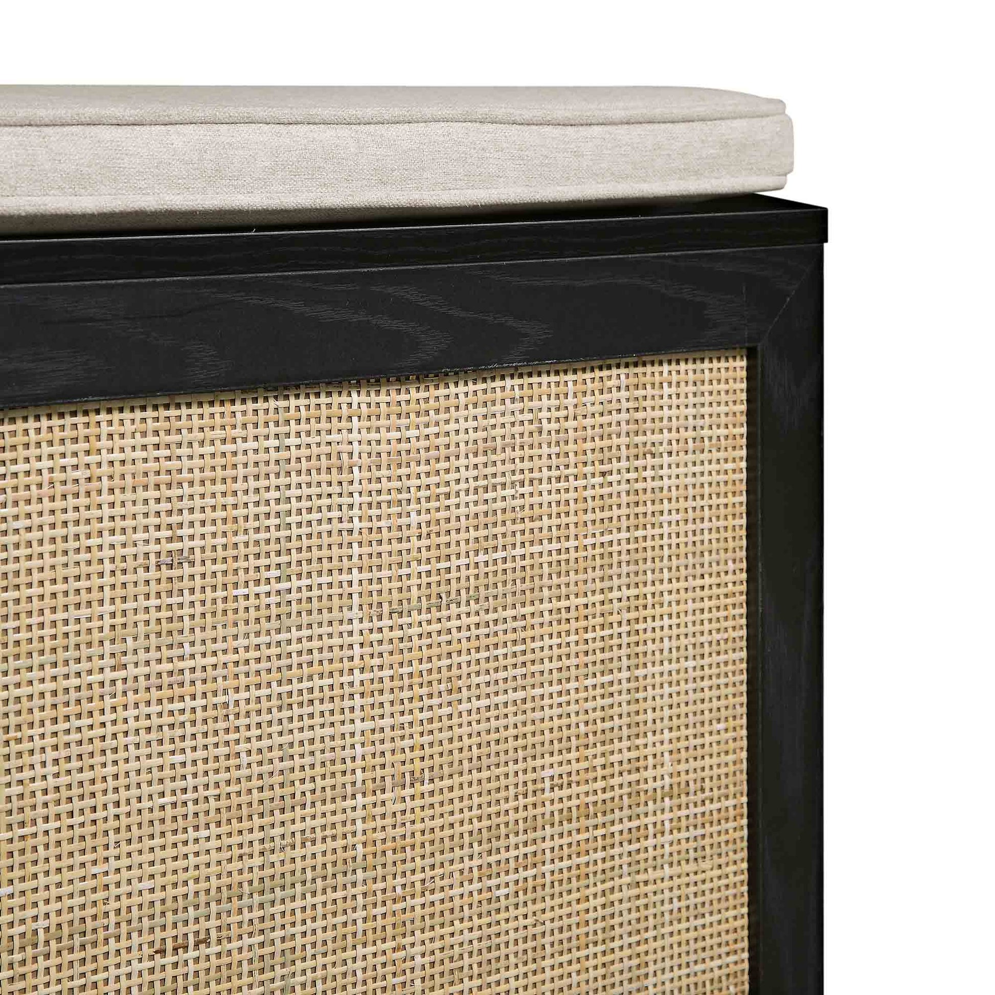 Les façades en rotin tressé naturel sont complétées par un coussin en tissu avoine.