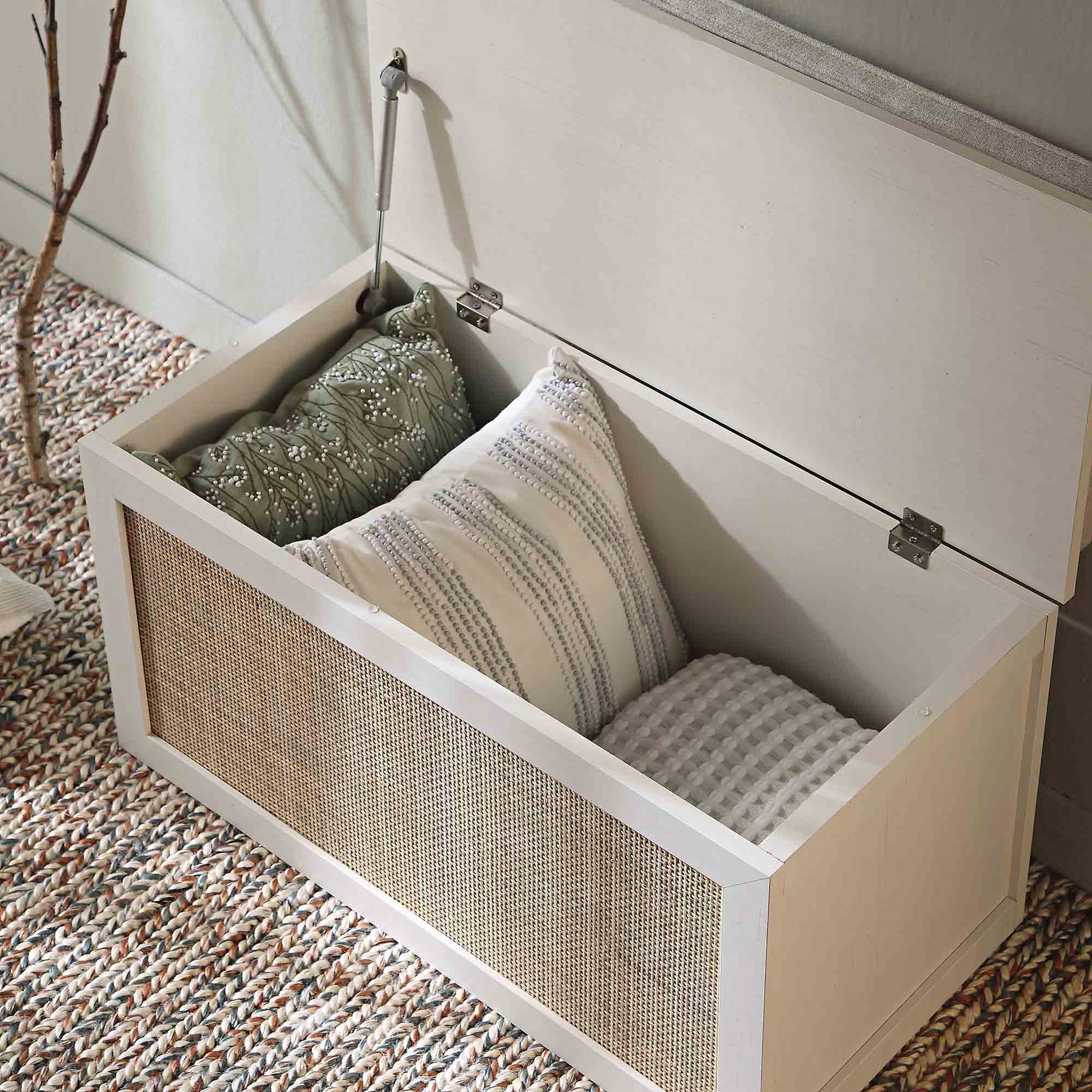 Notre tabouret en rotin Frances offre un rangement pratique et élégant à n'importe quel endroit de votre maison.