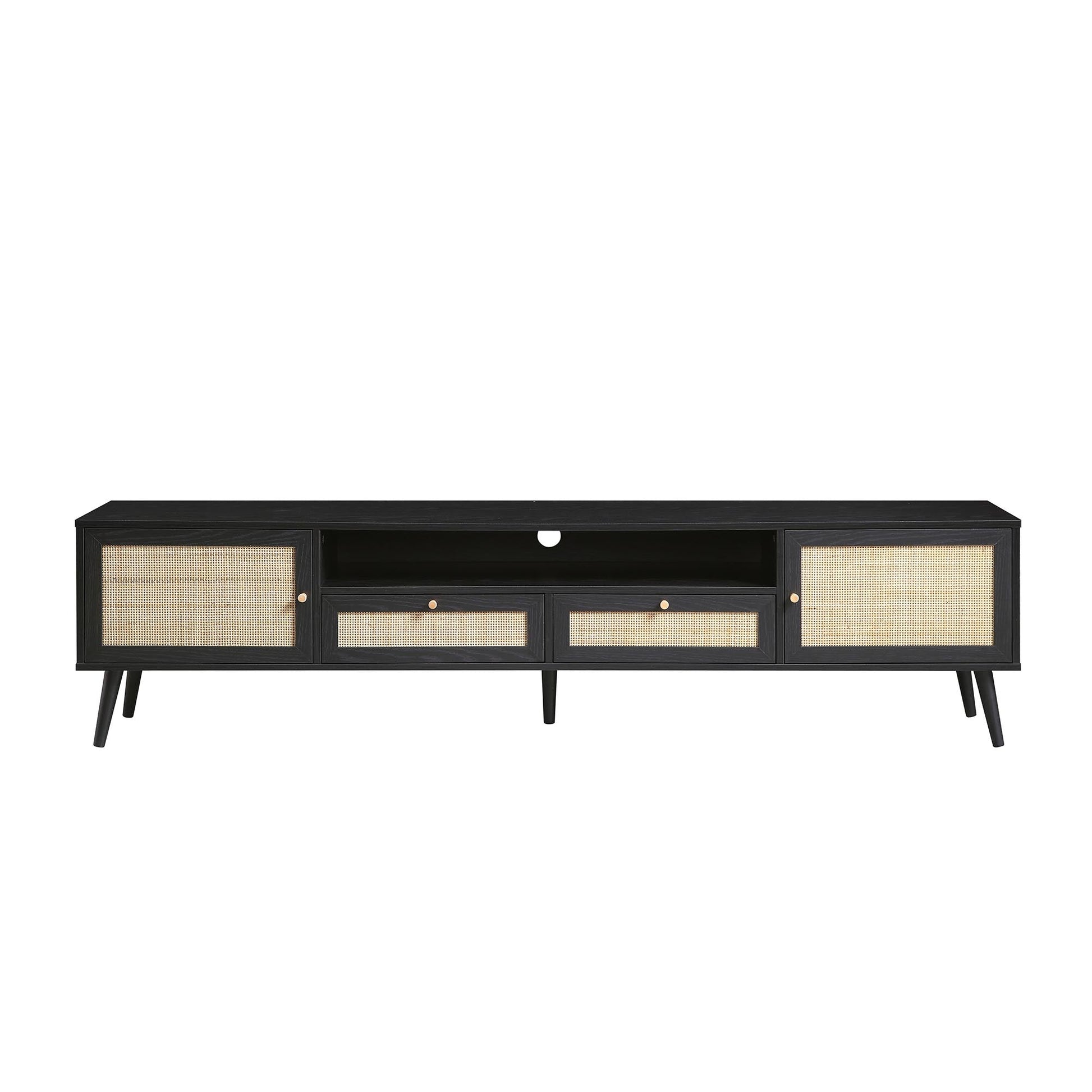 D'une largeur de 79 pouces, le meuble TV peut accueillir un téléviseur jusqu'à 80 pouces (le téléviseur présenté dans l'image du produit mesure 75 pouces).