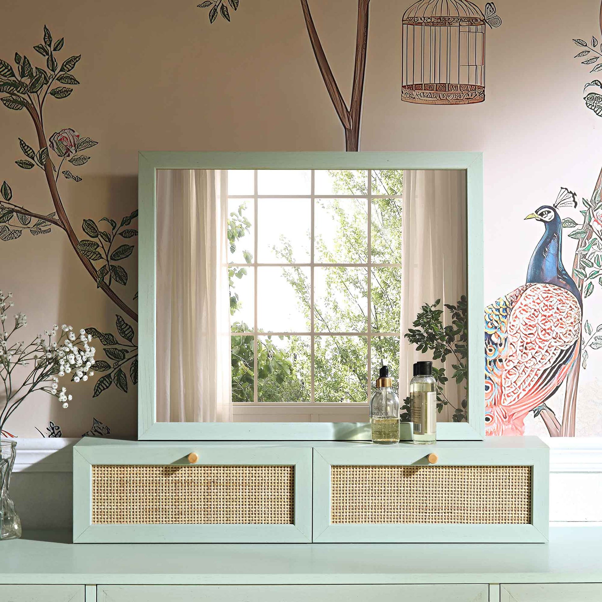 Assurez-vous de vous habiller avec style avec notre miroir de vanité en rotin tissé Frances.
