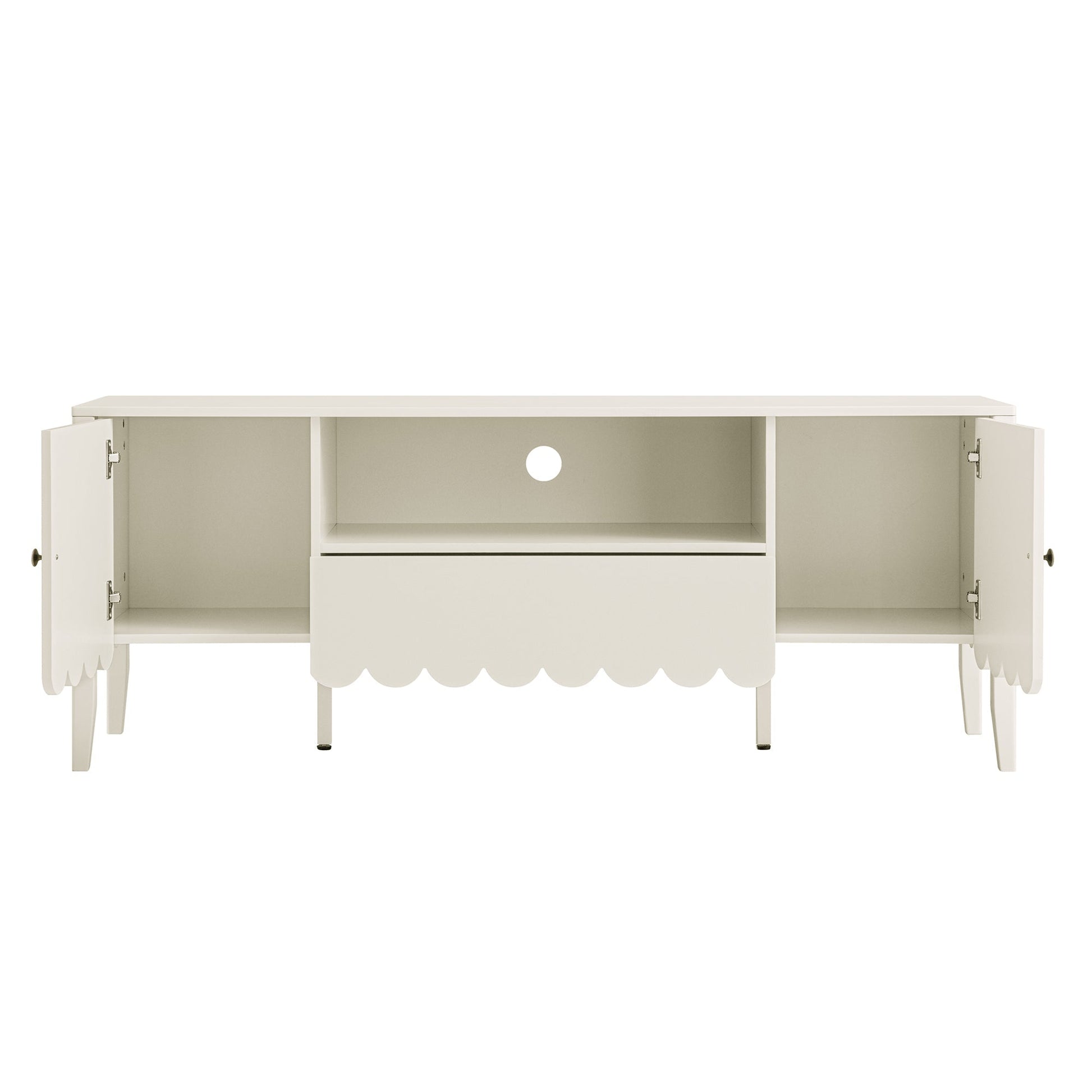 Le meuble TV de 59 pouces de large est compatible avec des téléviseurs jusqu'à 60 pieds. Le téléviseur présenté sur les photos est de 55 pieds à titre indicatif.