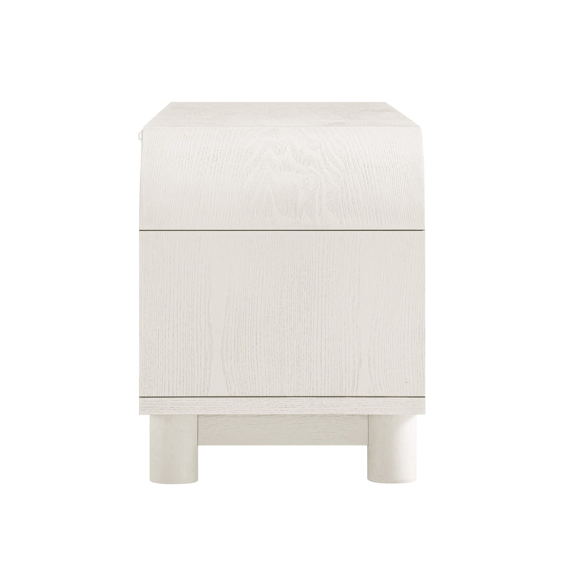 La peinture blanche lavée à base d’eau expose le grain naturel du bois de frêne.