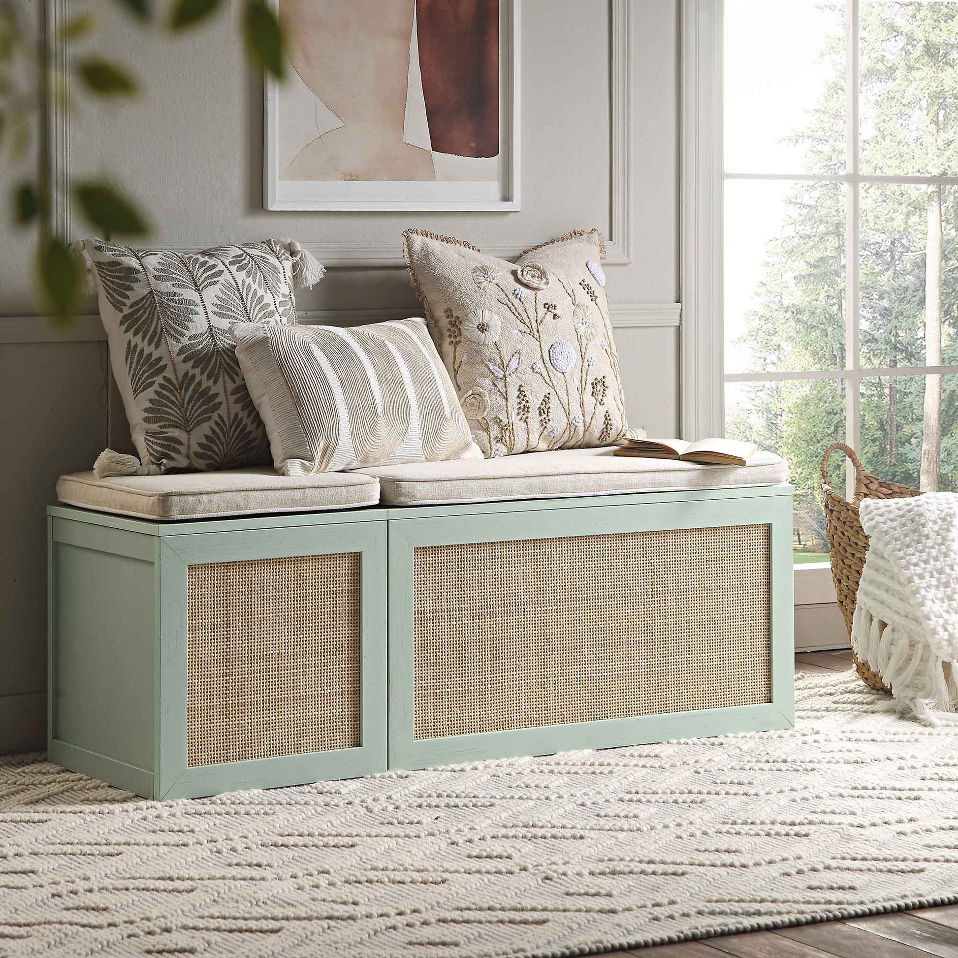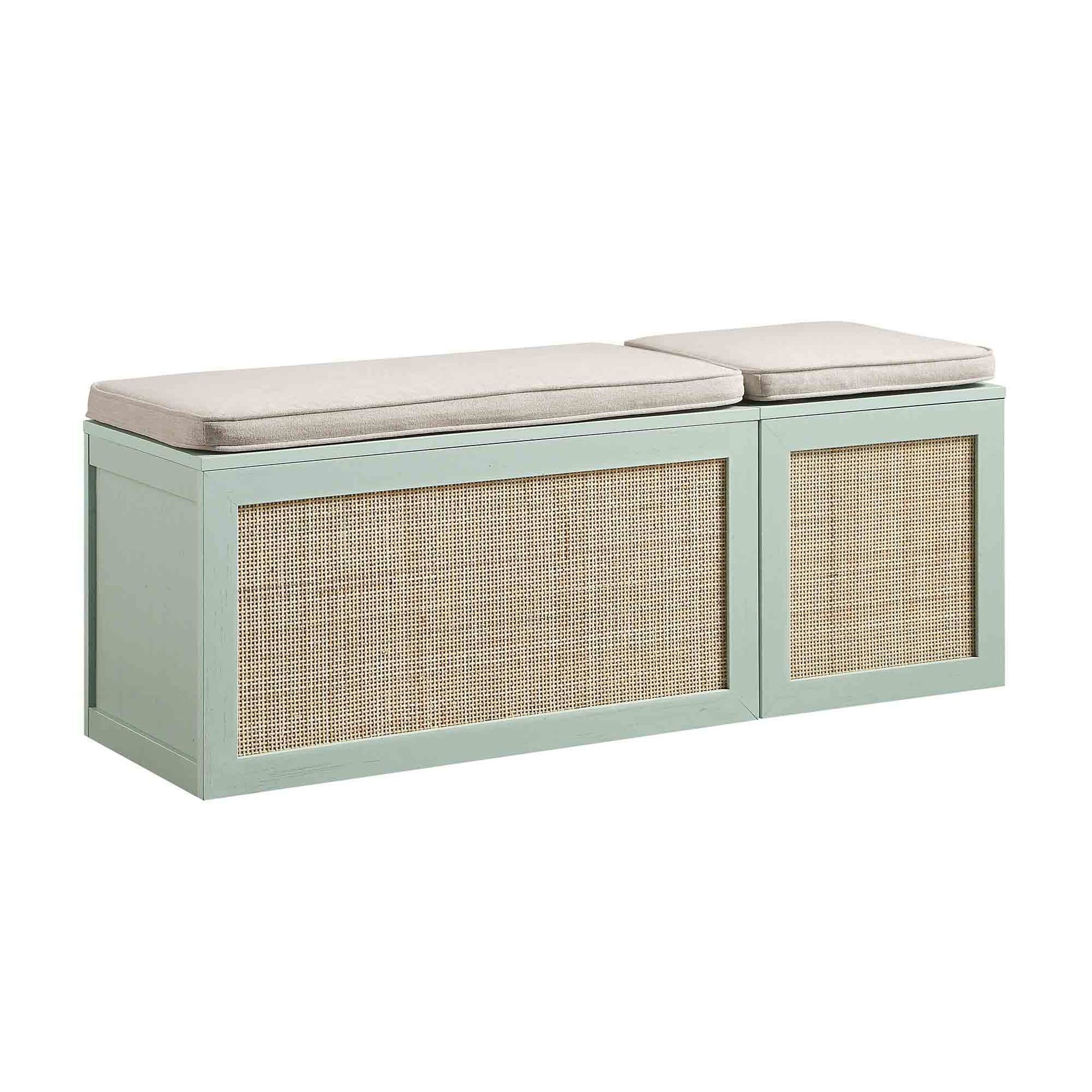 Les façades en rotin tressé naturel sont complétées par un coussin en tissu avoine.