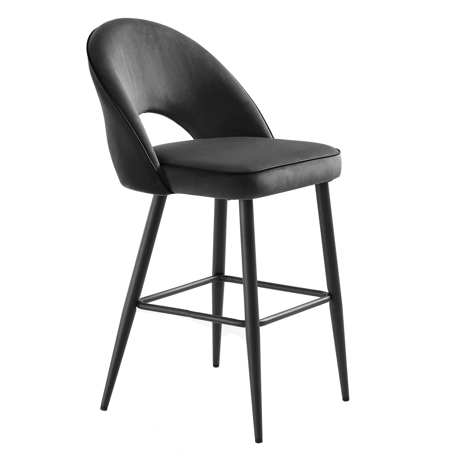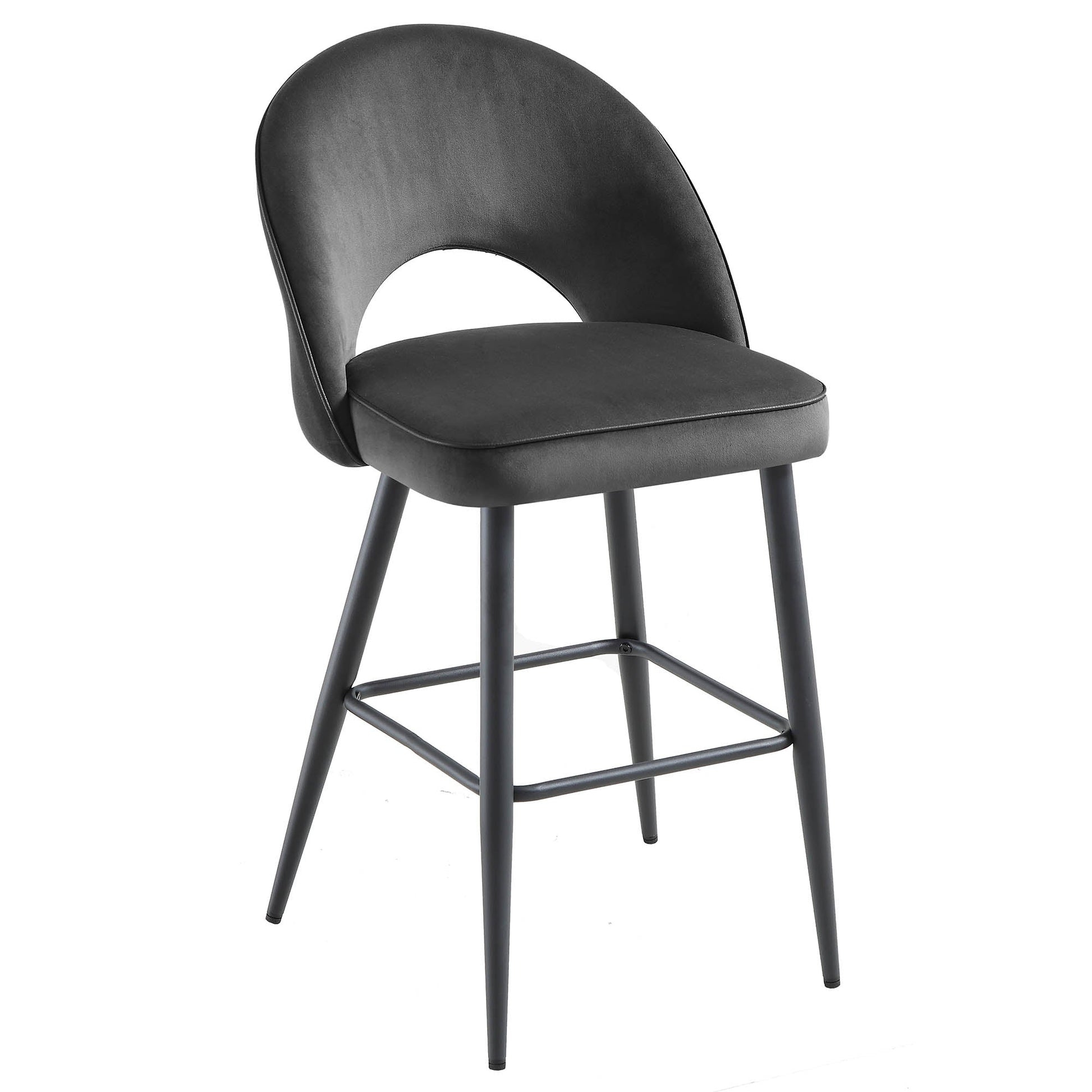 Ensemble de 2 tabourets de bar Oakley en velours gris foncé avec passepoil contrasté