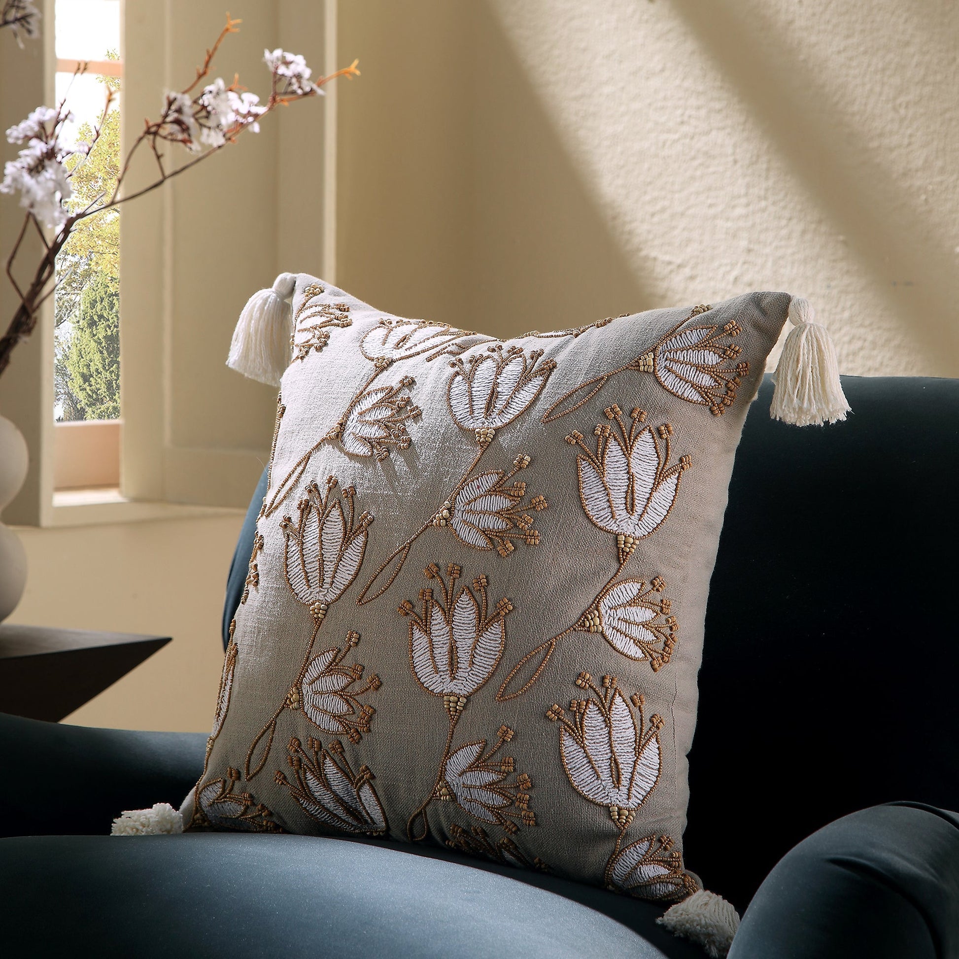 Coussin perlé brodé à la main Vine Collection Wild Lotus