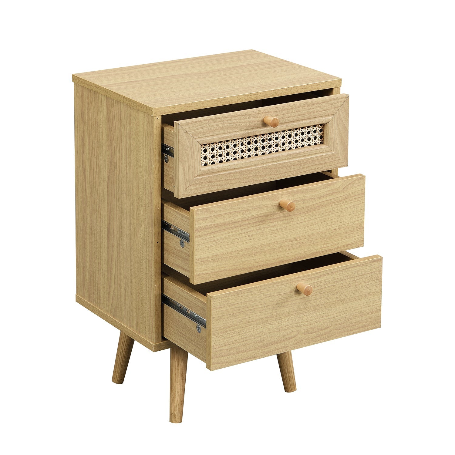 Table de chevet Anya à 3 tiroirs en rotin tressé naturel