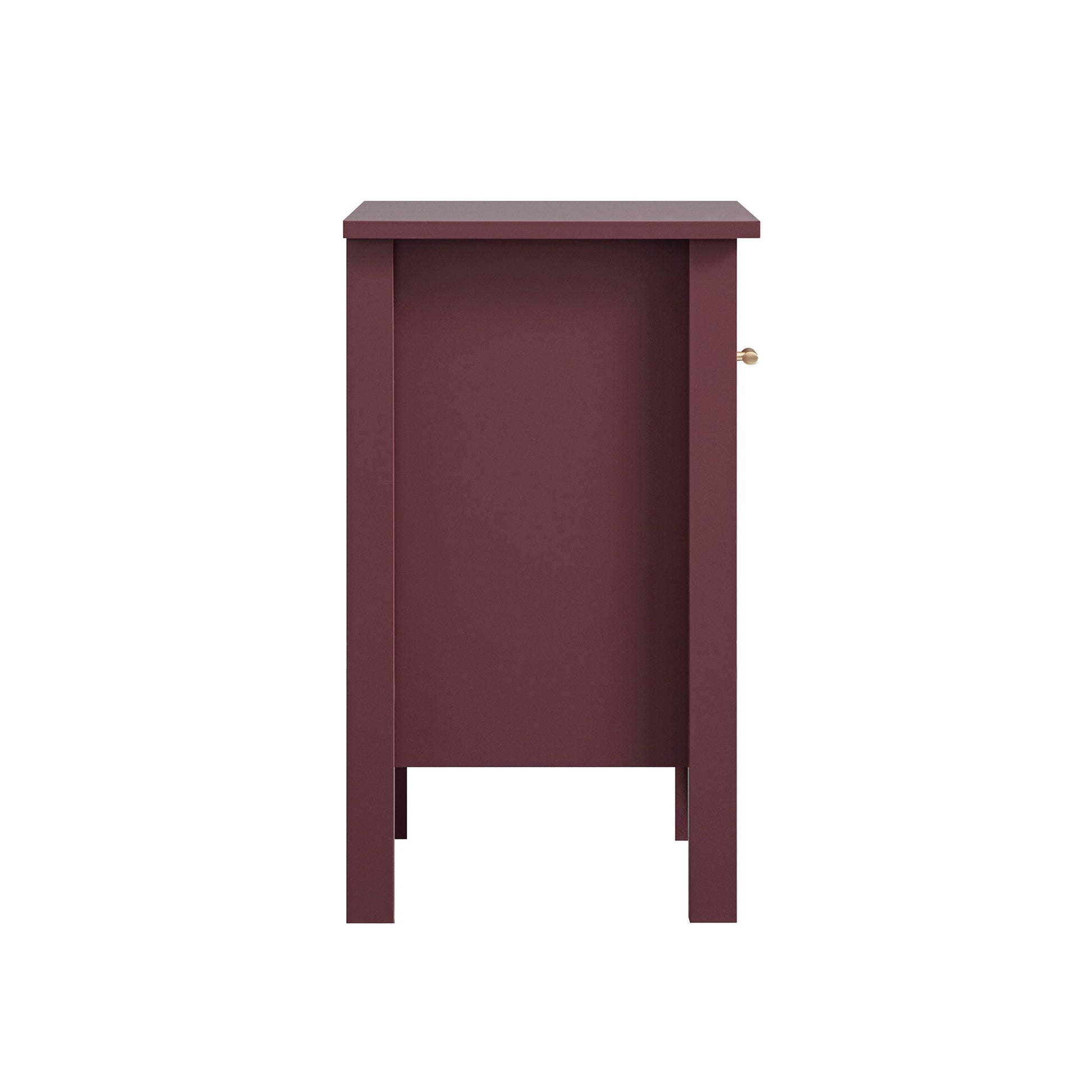 Le ton bordeaux profond se marie à merveille avec la silhouette épurée et les pieds légèrement fuselés, tandis que la poignée en laiton brossé apporte une note de raffinement discret.