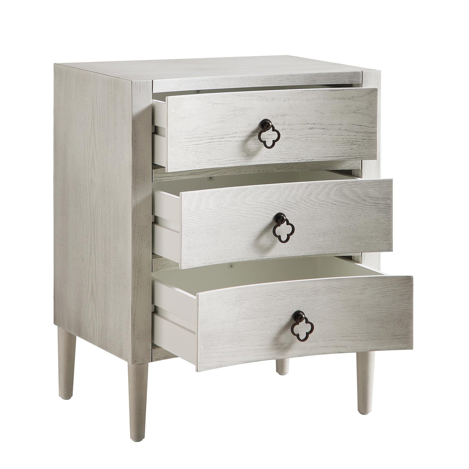 Table de chevet concave Thalia à 3 tiroirs, blanc délavé