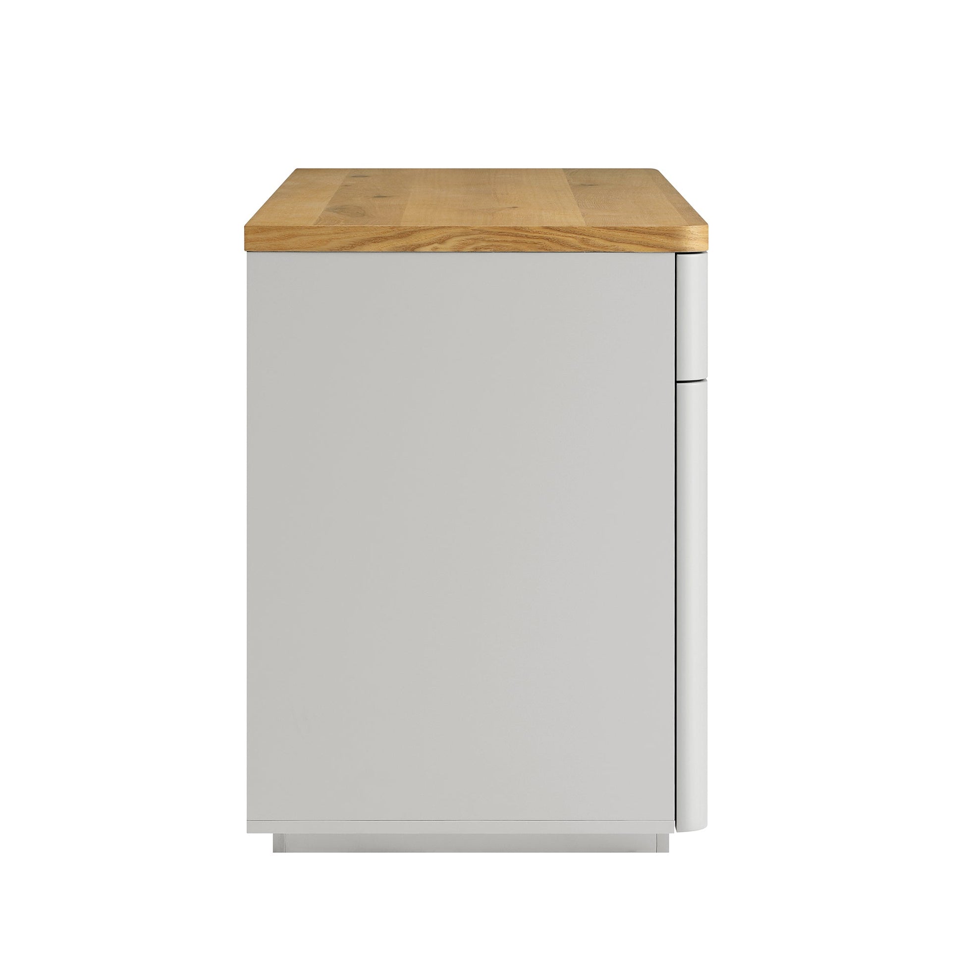 Ce bureau est fini dans un ton gris colombe avec un plateau en chêne naturel pour un style polyvalent et discret.