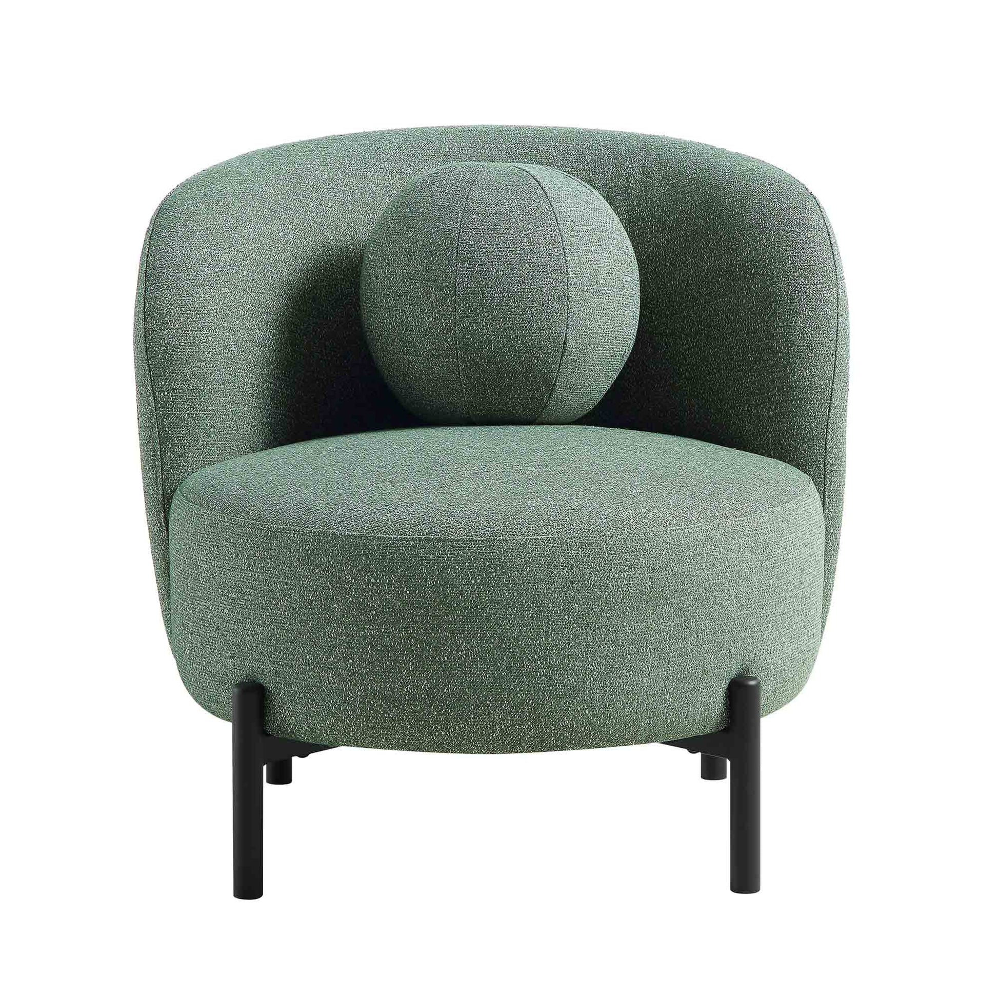Fauteuil Amboise avec coussin boule, tissu texturé vert épicéa