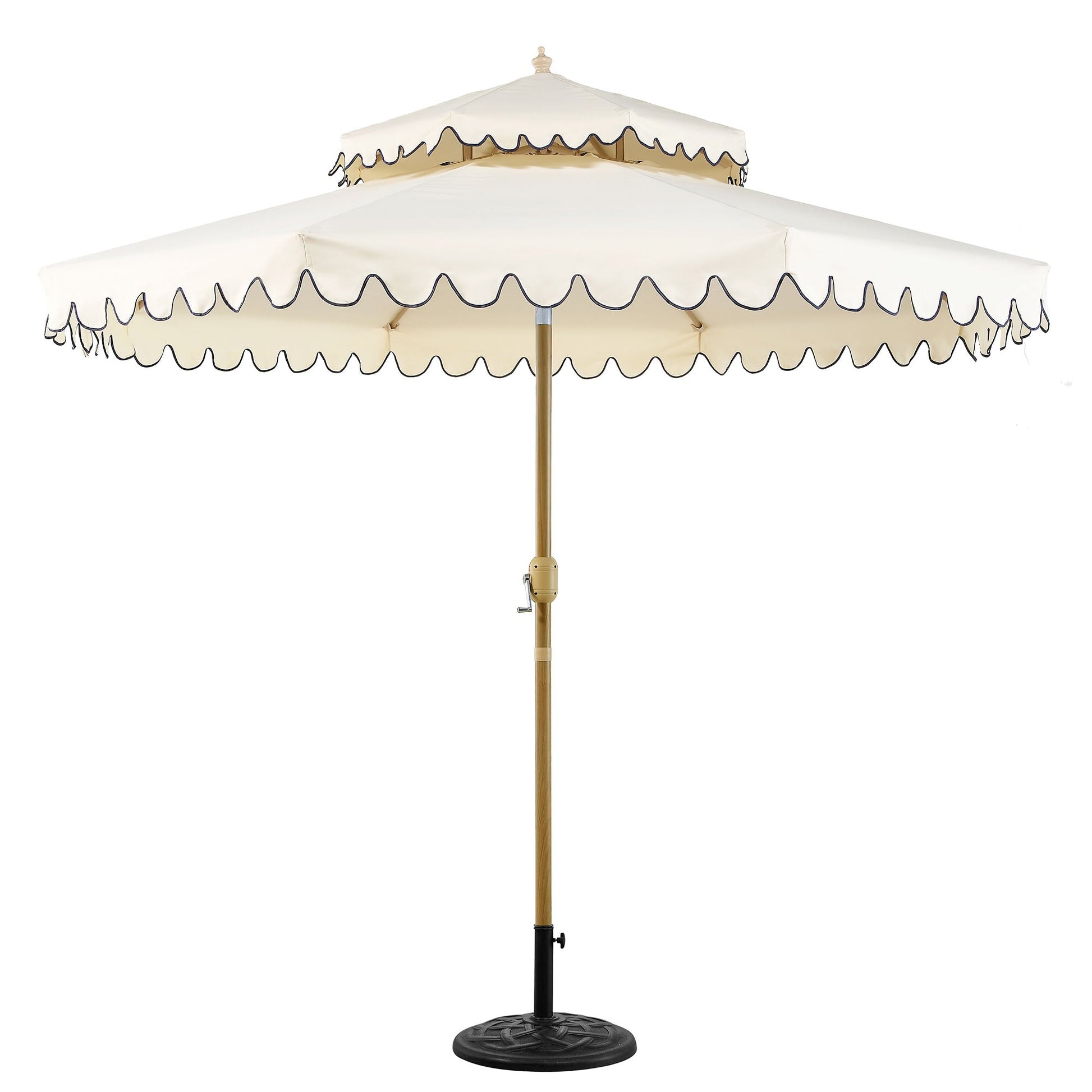 Avec un design à double sommet amélioré de 3 mètres, ce magnifique parasol de jardin est conçu avec un élégant bord festonné de couleur bleu marine contrastante.