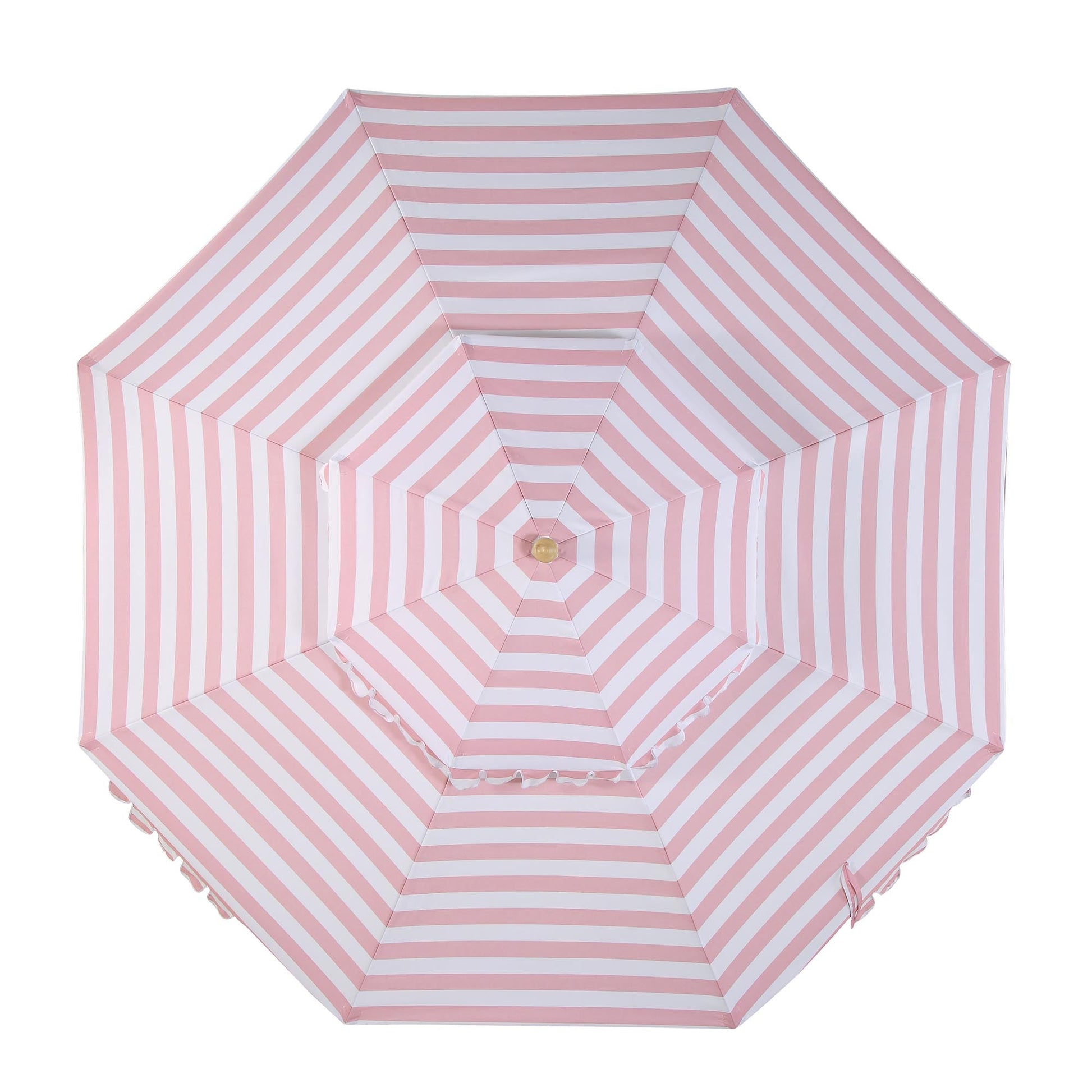Désormais disponible avec un design amélioré à double sommet de 3 mètres, notre nouveau parasol de jardin présente un magnifique design rayé rose et blanc