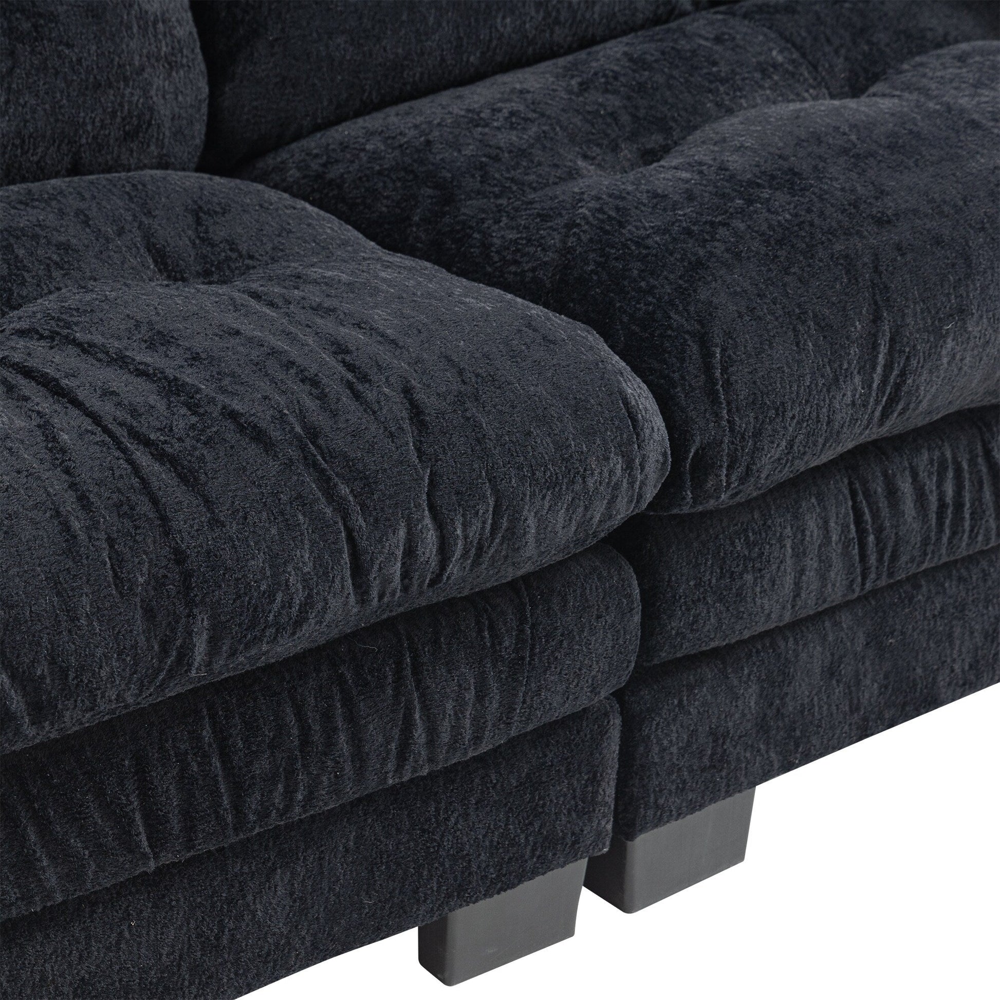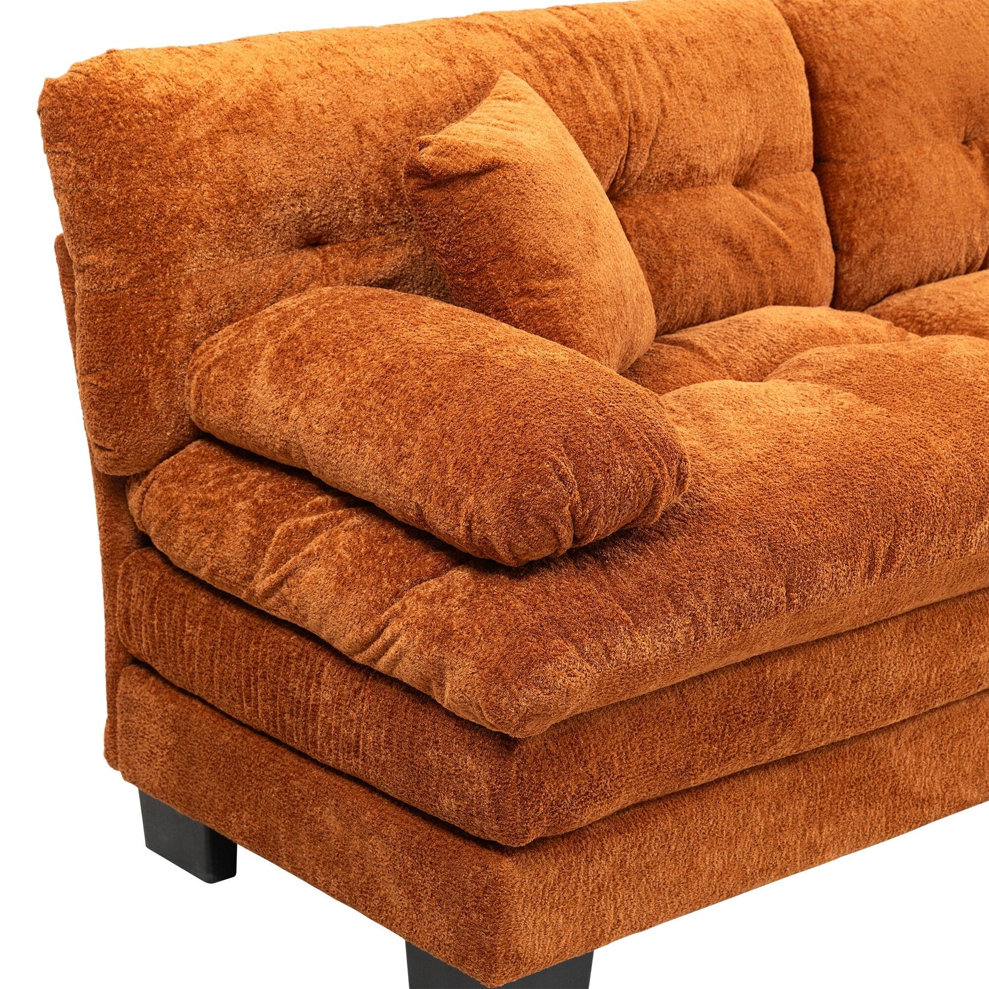 Tissu chenille de qualité supérieure : Fabriqué à partir de tissu chenille soigneusement sélectionné, ce canapé offre une texture douce et délicate qui est non seulement esthétique, mais également durable et facile à nettoyer, garantissant qu'il reste comme neuf au fil du temps.