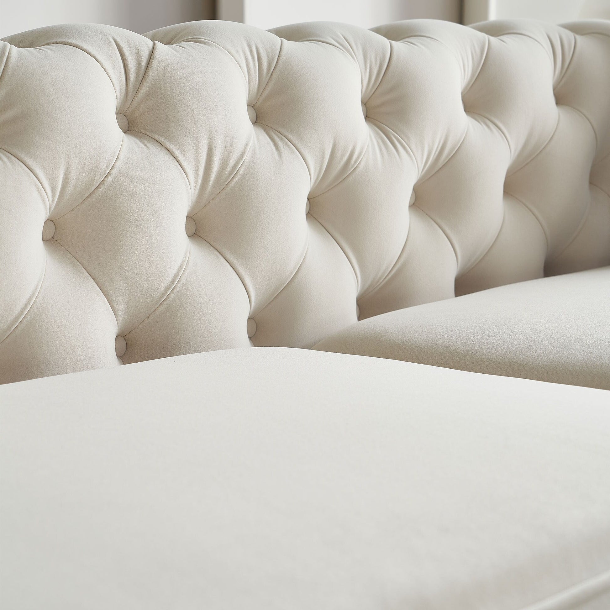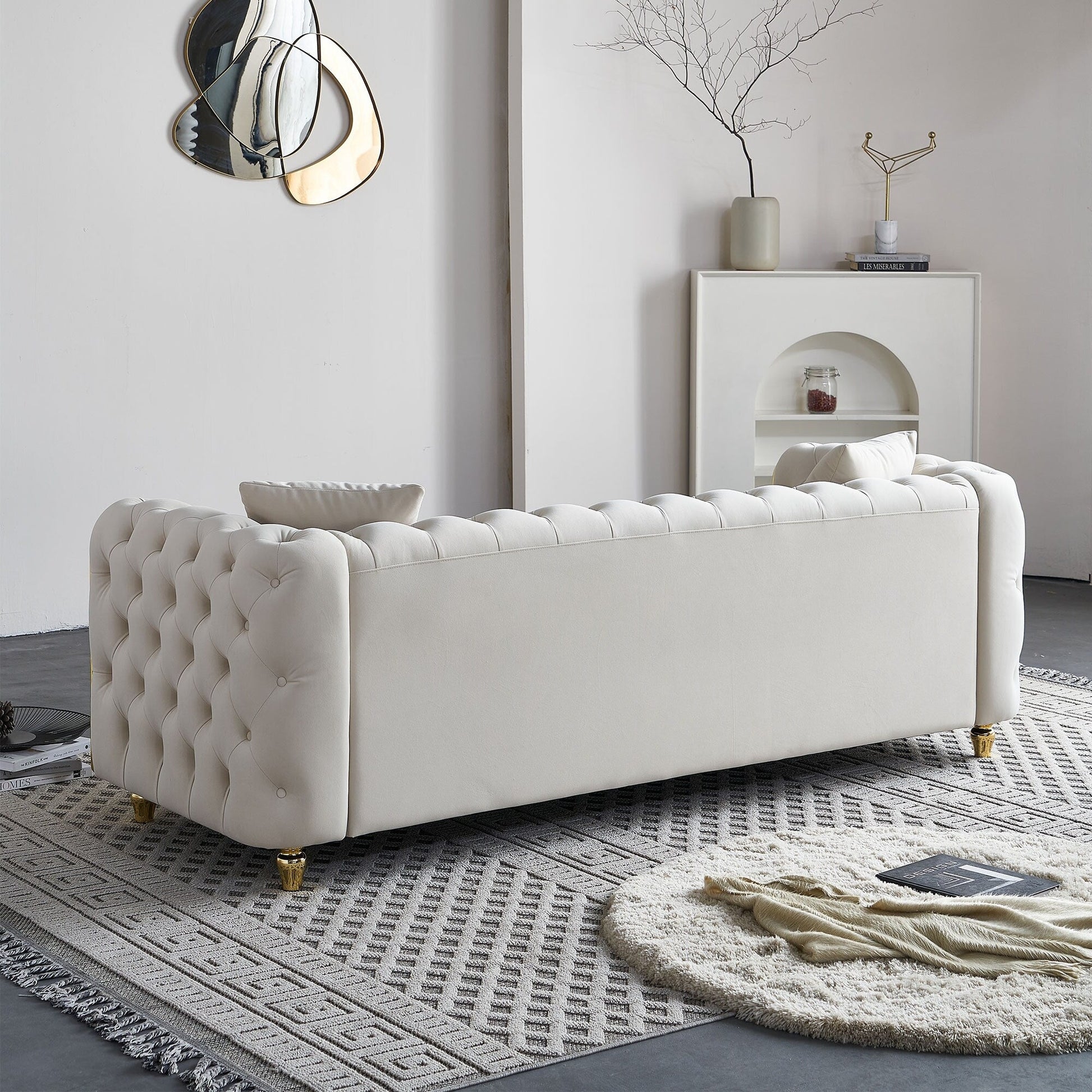 Ce canapé à dossier capitonné est doté d'une bordure à bandes dorées et d'un capitonnage à boutons profonds qui ajoutent un style glamour classique à votre salon.