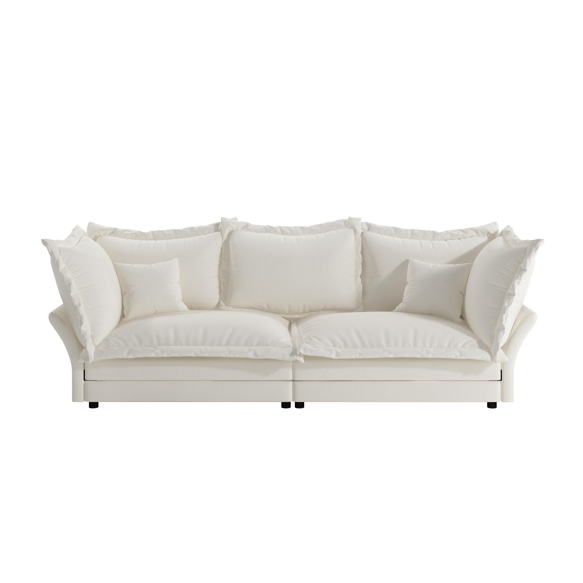 Support stable de 800 lb même pour 3 adultes : il n'est pas exagéré de dire que le canapé du salon ne vacillera pas ou ne s'effondrera pas lorsque vous et votre famille jouez dessus. Le canapé du salon est fait de matériaux de haute qualité, qu'il s'agisse de bois, de coussins de siège à ressorts en métal ou d'autres matériaux de support, tous sont soigneusement sélectionnés et traités pour supporter le poids de 800 lb, vous soutenir fermement, vous et votre famille, et rester toujours droit et ne sera pas plié ou déformé lors de l'utilisation du canapé cloud.