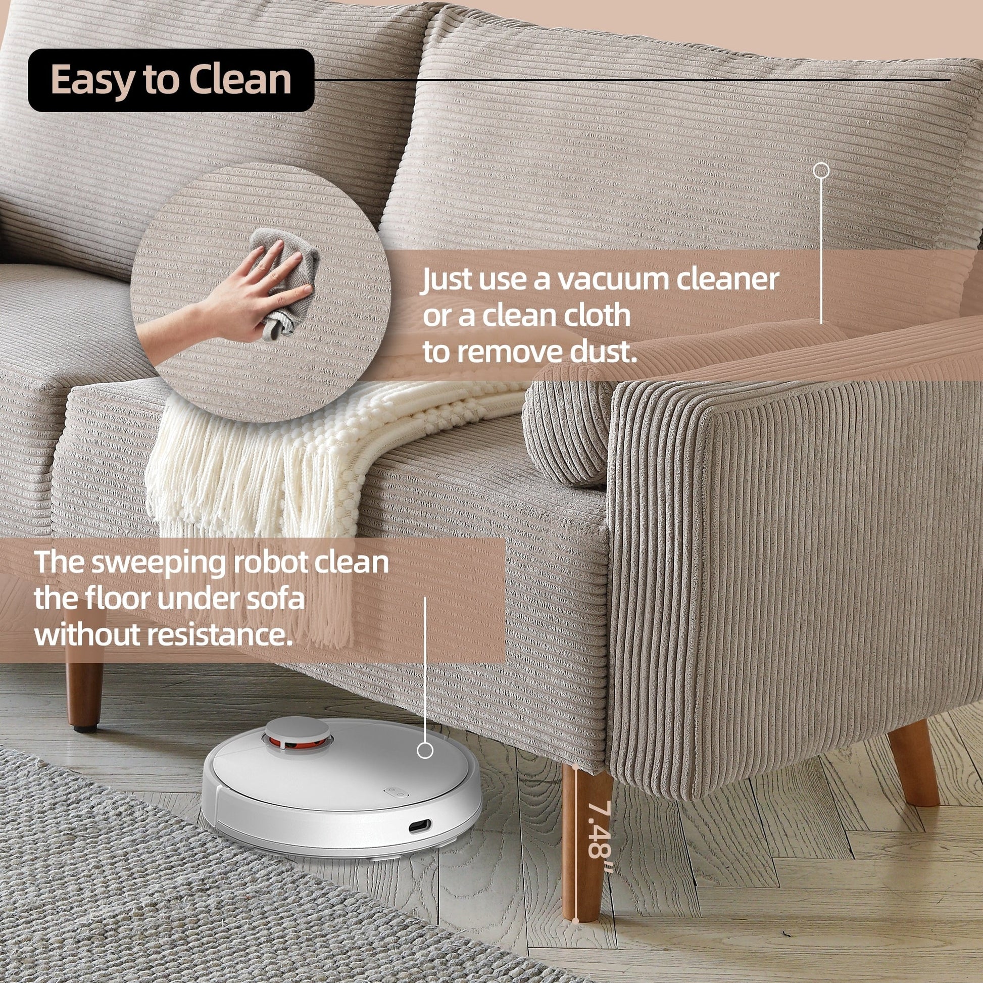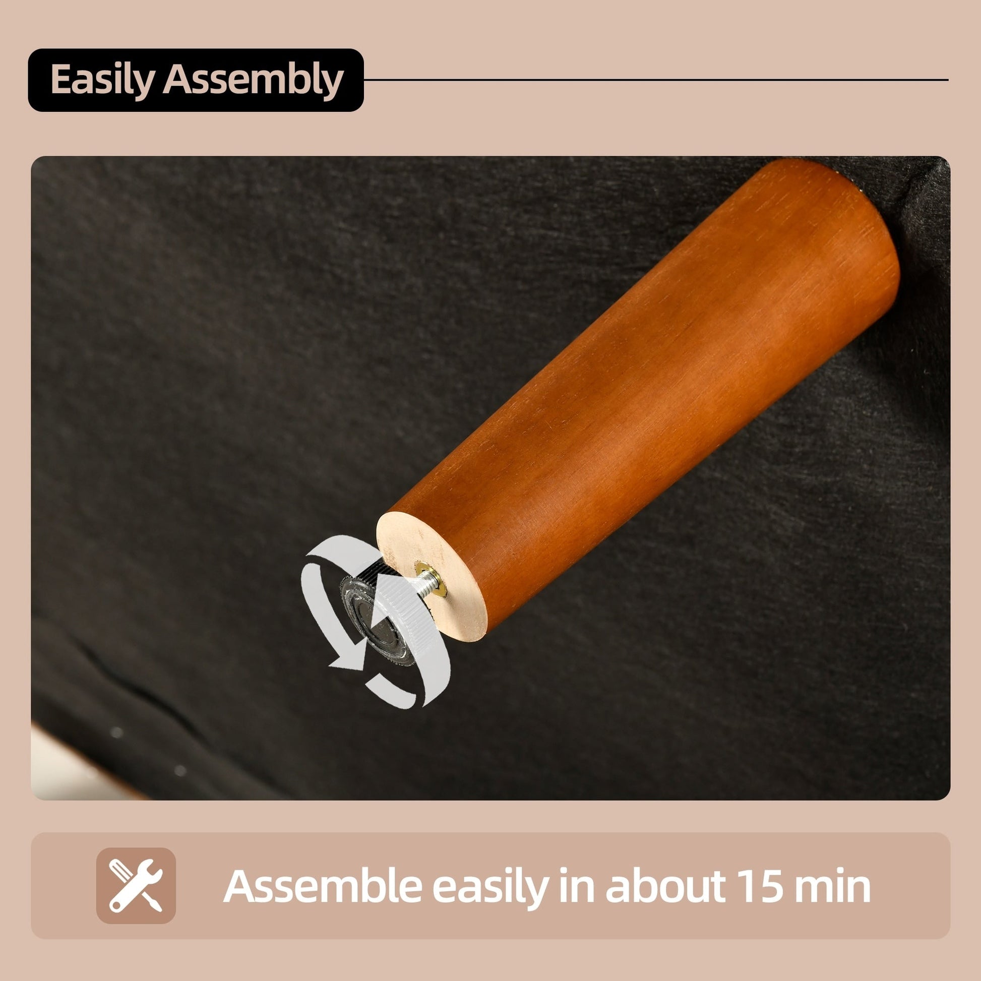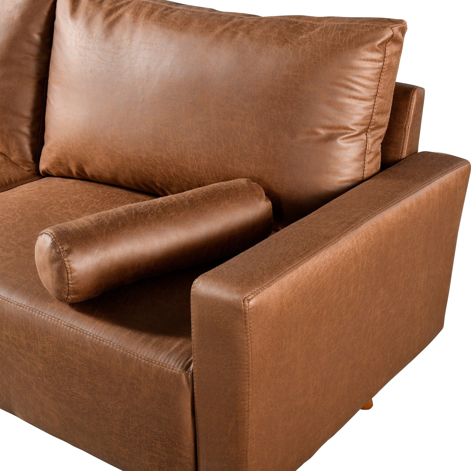 Profitez du confort et de la beauté de chaque après-midi de détente avec le canapé rembourré moderne HOOOWOOO du milieu du siècle avec coussins roulés. Associant parfaitement son revêtement moelleux et ses pieds en bois, ce canapé apporte non seulement du charme à tout intérieur, mais procure également une sensation de bien-être. Son design ergonomique, ses lignes épurées et son élégance mettent en valeur sa texture et sa qualité, lui permettant d'être parfaitement intégré dans un salon ou un appartement.