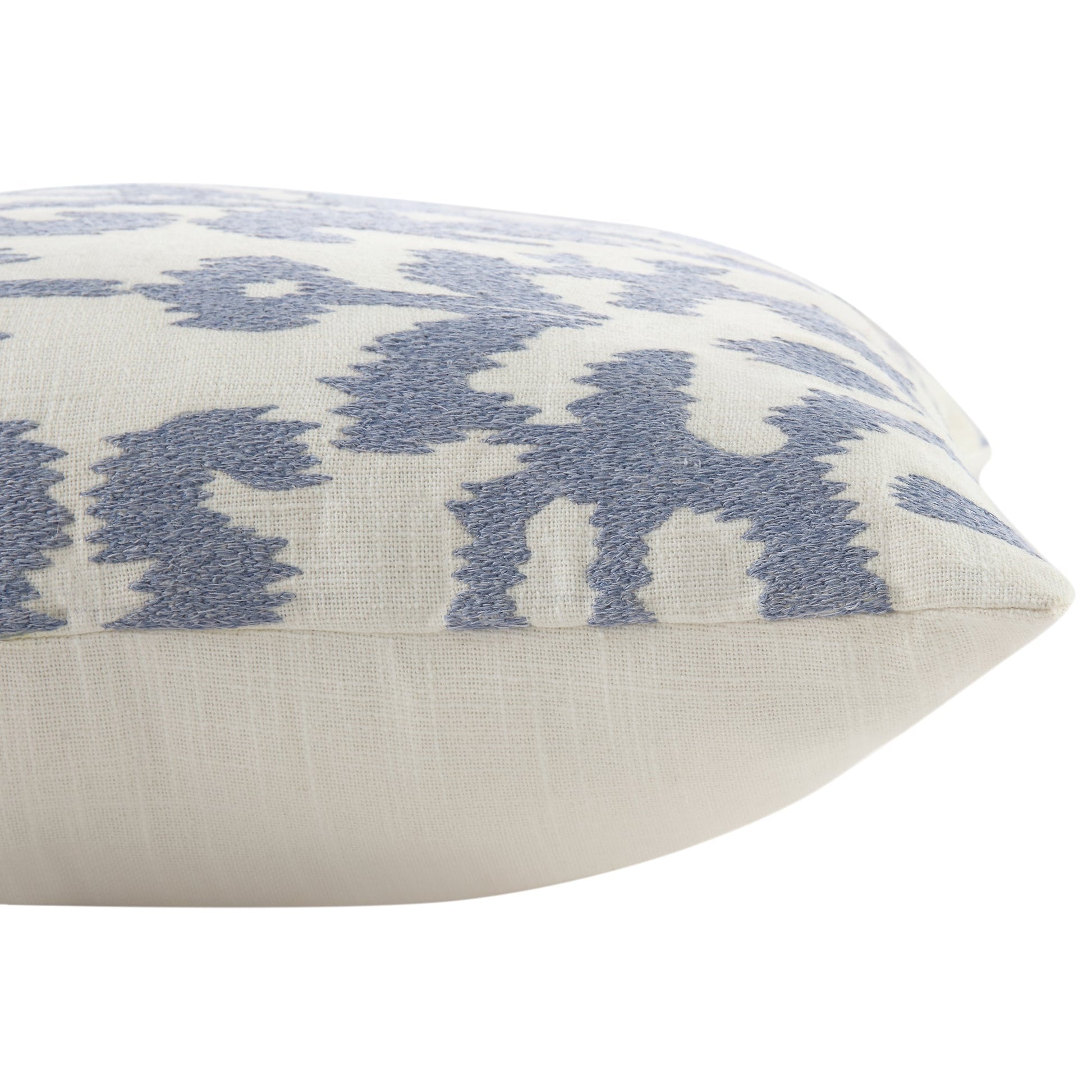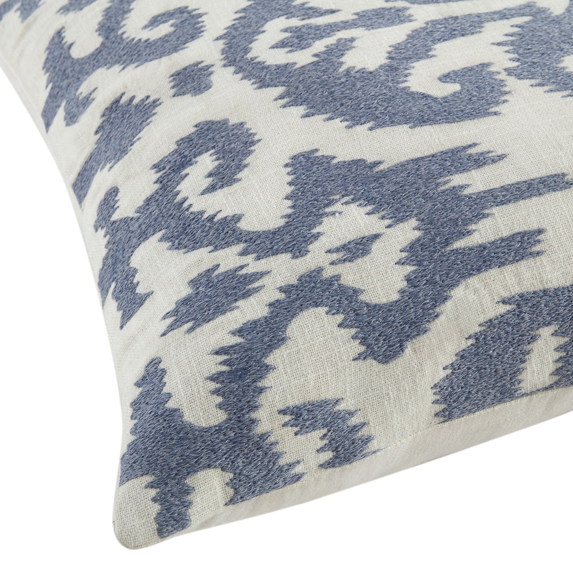 • Brodé de manière complexe avec un mélange de fils de couleur bleu poussiéreux pour un résultat varié, notre coussin Ikat respire une beauté intemporelle.
